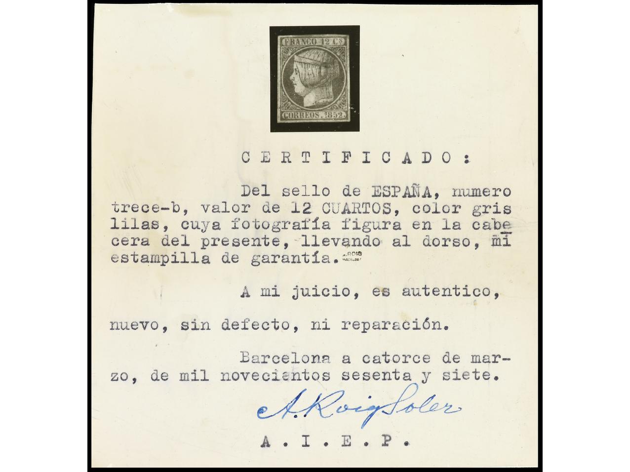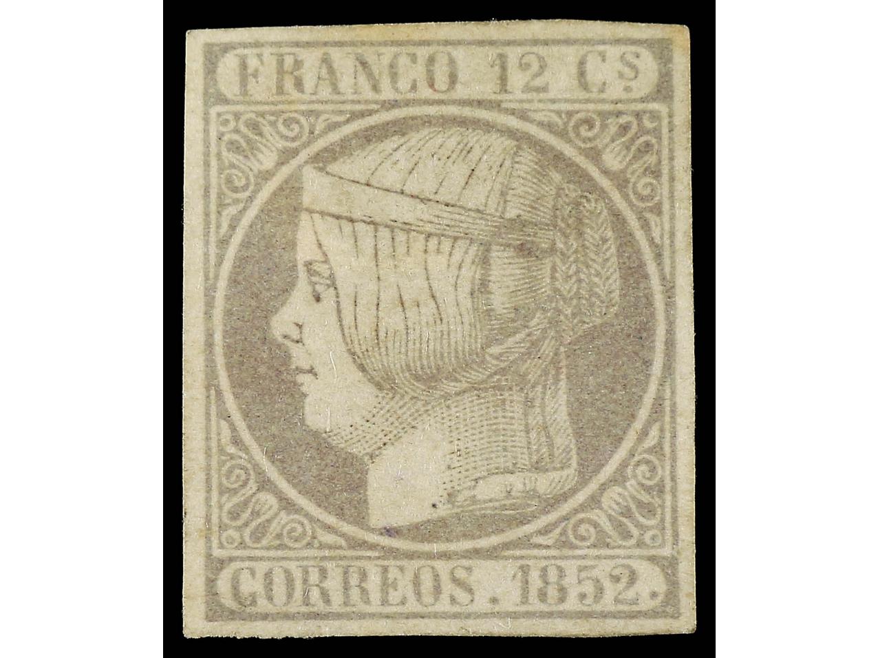 ESPAÑA. 12 cuartos lila. Color pálido y dos márgenes justos, pero completos. Ínfimo punto claro. Cert. COMEX. Ed.7. Cat. 3.900€. (Image1) (Image2)