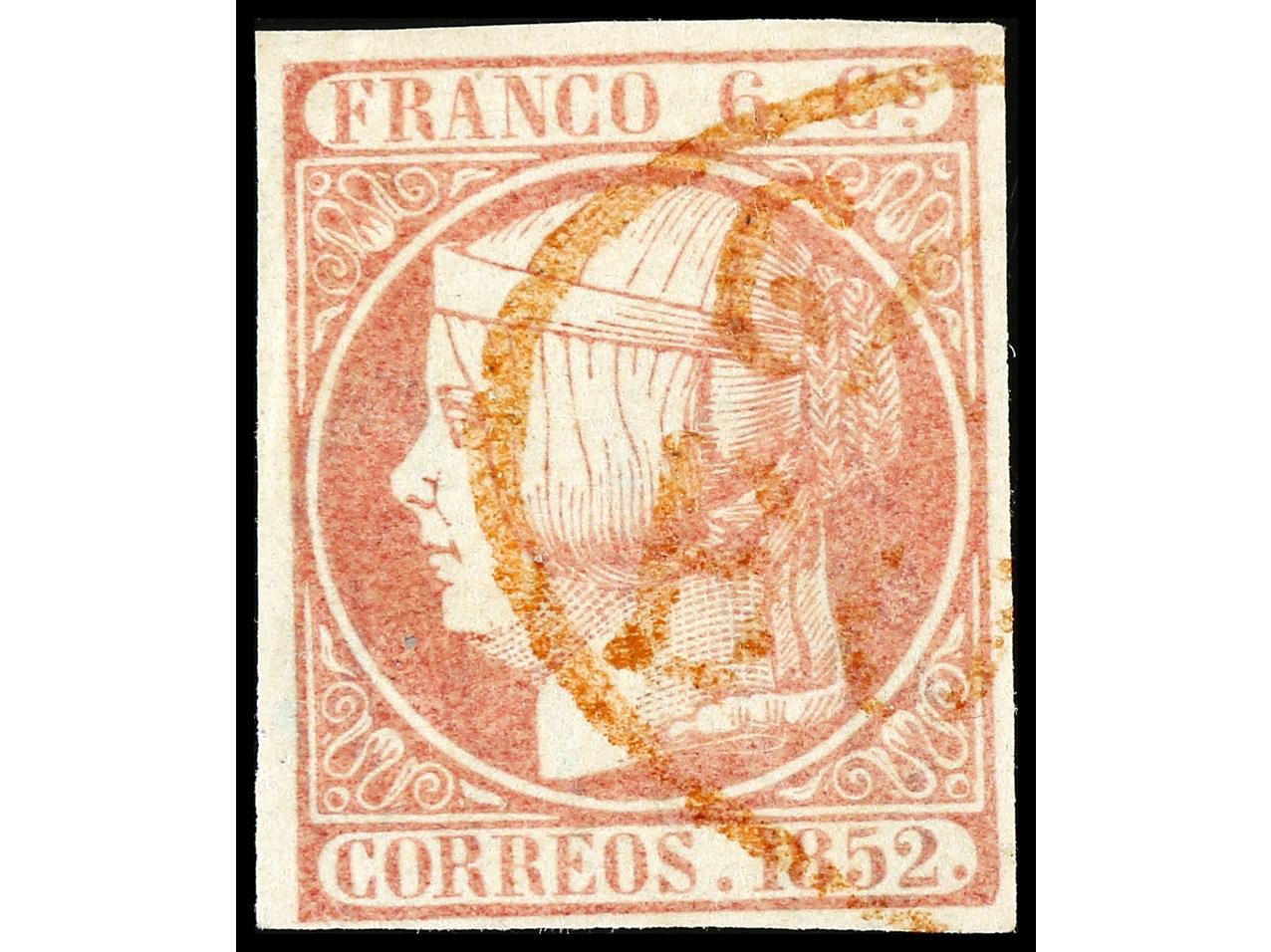 ESPAÑA. 2 reales naranja. Color excepcional y buenos márgenes. MAGNÍFICO EJEMPLAR. Cert. GRAUS. Ed.8. Cat. 25.000€. (Image1) (Image2)