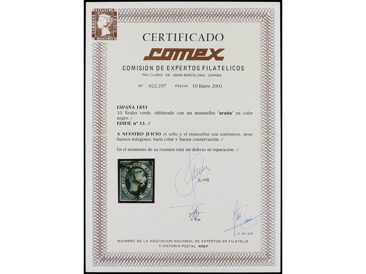 ESPAÑA. 10 reales verde. Muy buen ejemplar. Cert. COMEX. Ed.11. (Image1) (Image2)