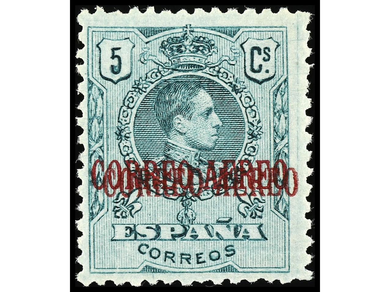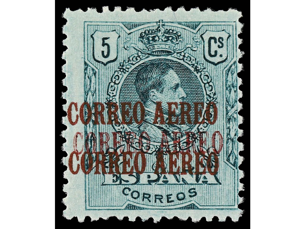 ESPAÑA. 5 c. verde, TRIPLE HABILITACIÓN. Ed.292hhh. Cat. 187€. (Image1)
