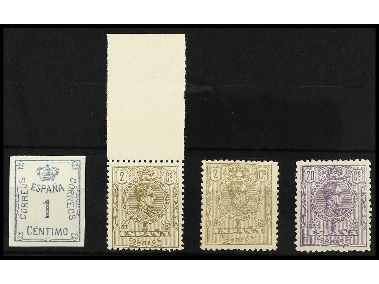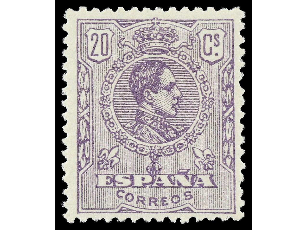 ESPAÑA. 20 céntimos violeta, centrado perfecto. Raro en esta calidad. PIEZA DE LUJO. Se incluye Ed. ** 289 muy bien centrados (2) y Ed. ** 291. Ed.290.