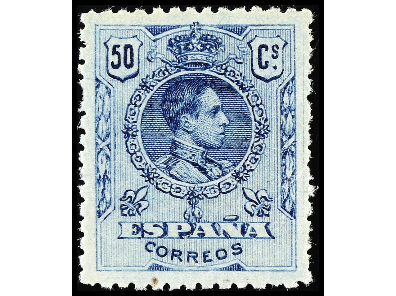 ESPAÑA. 50 cts. azul, numeración A000.000. LUJO. Ed.277. (Image1)