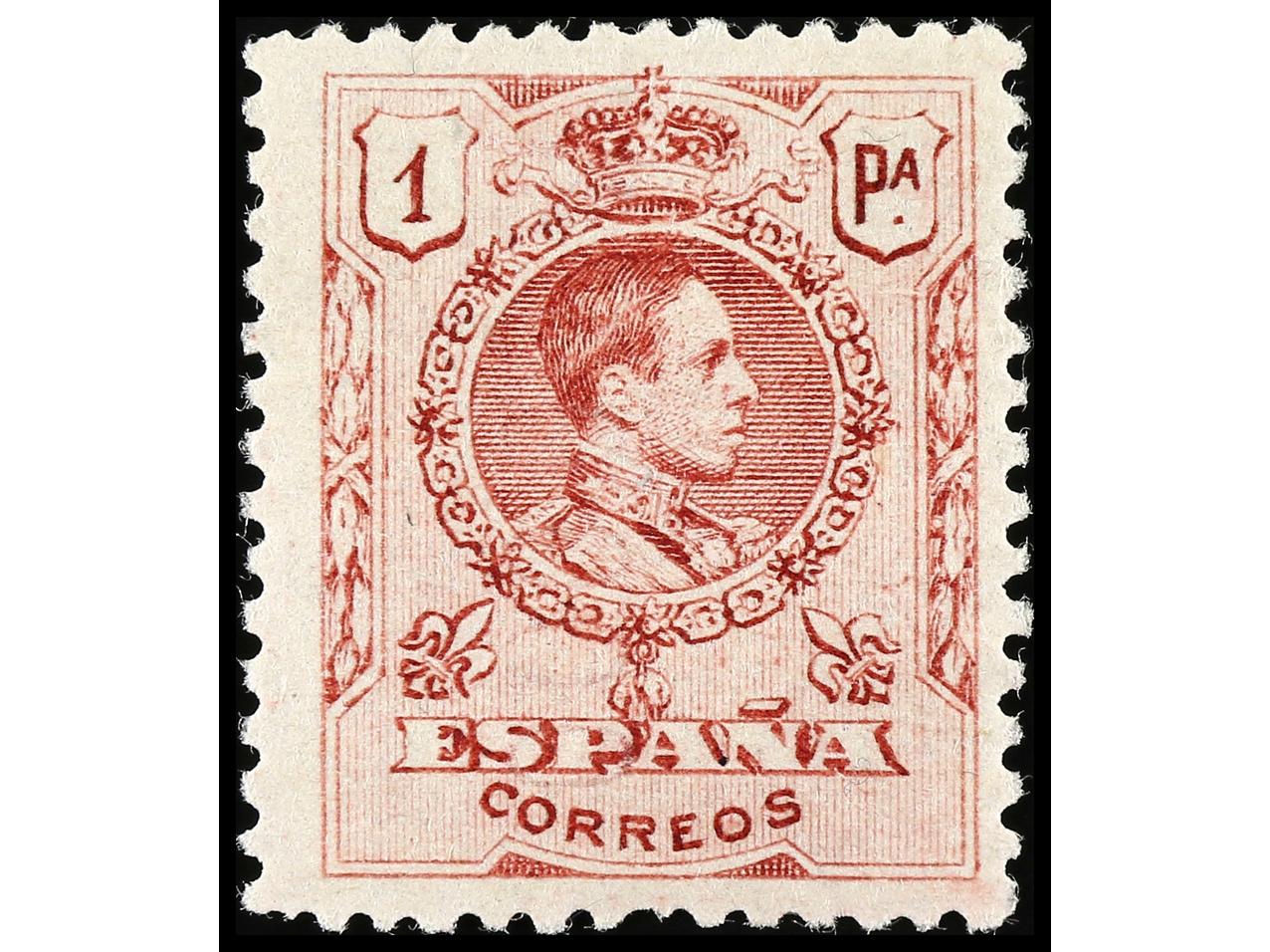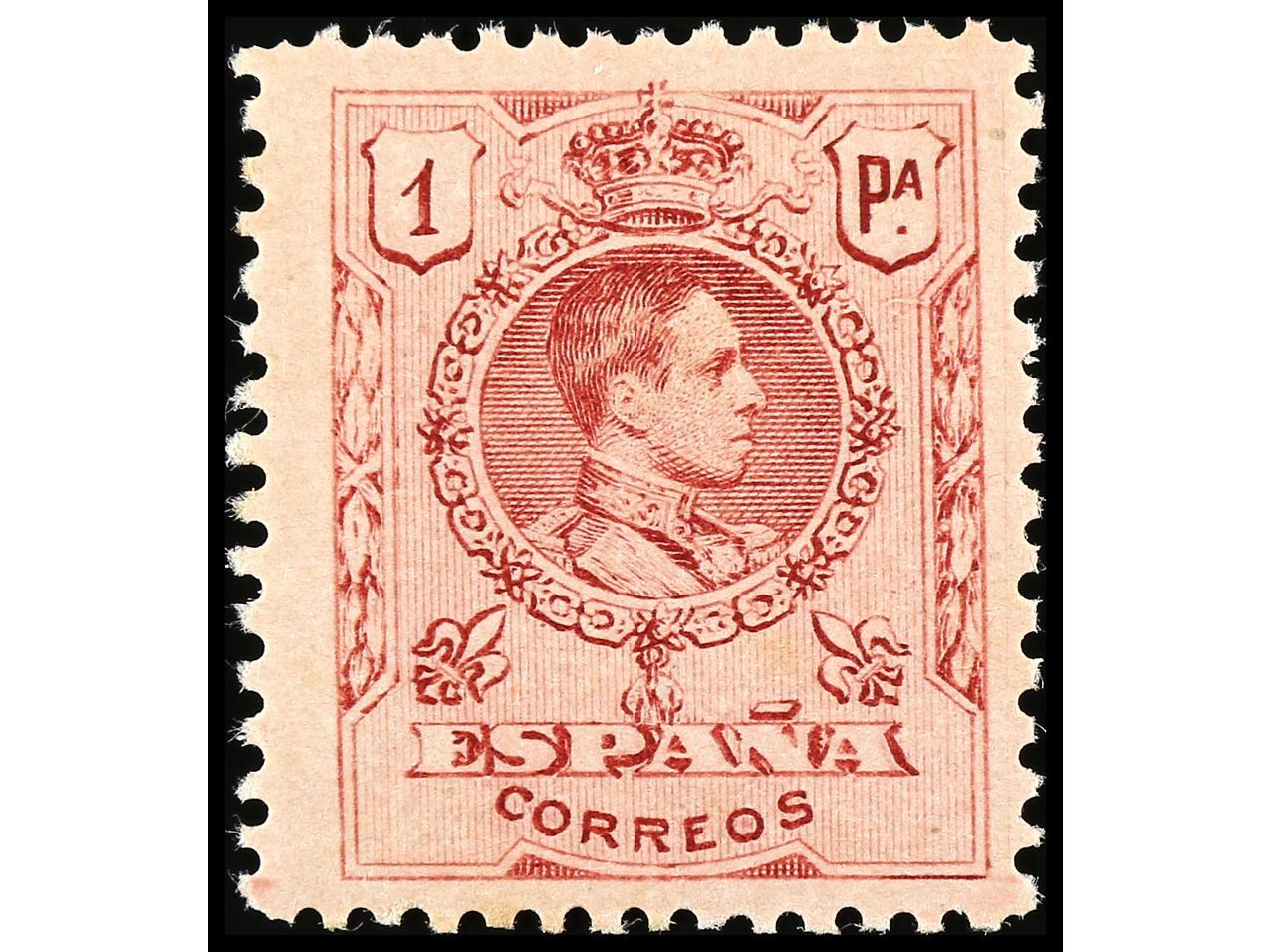 ESPAÑA. 1 peseta carmín. Numeración ceros. LUJO. Ed.278. (Image1)