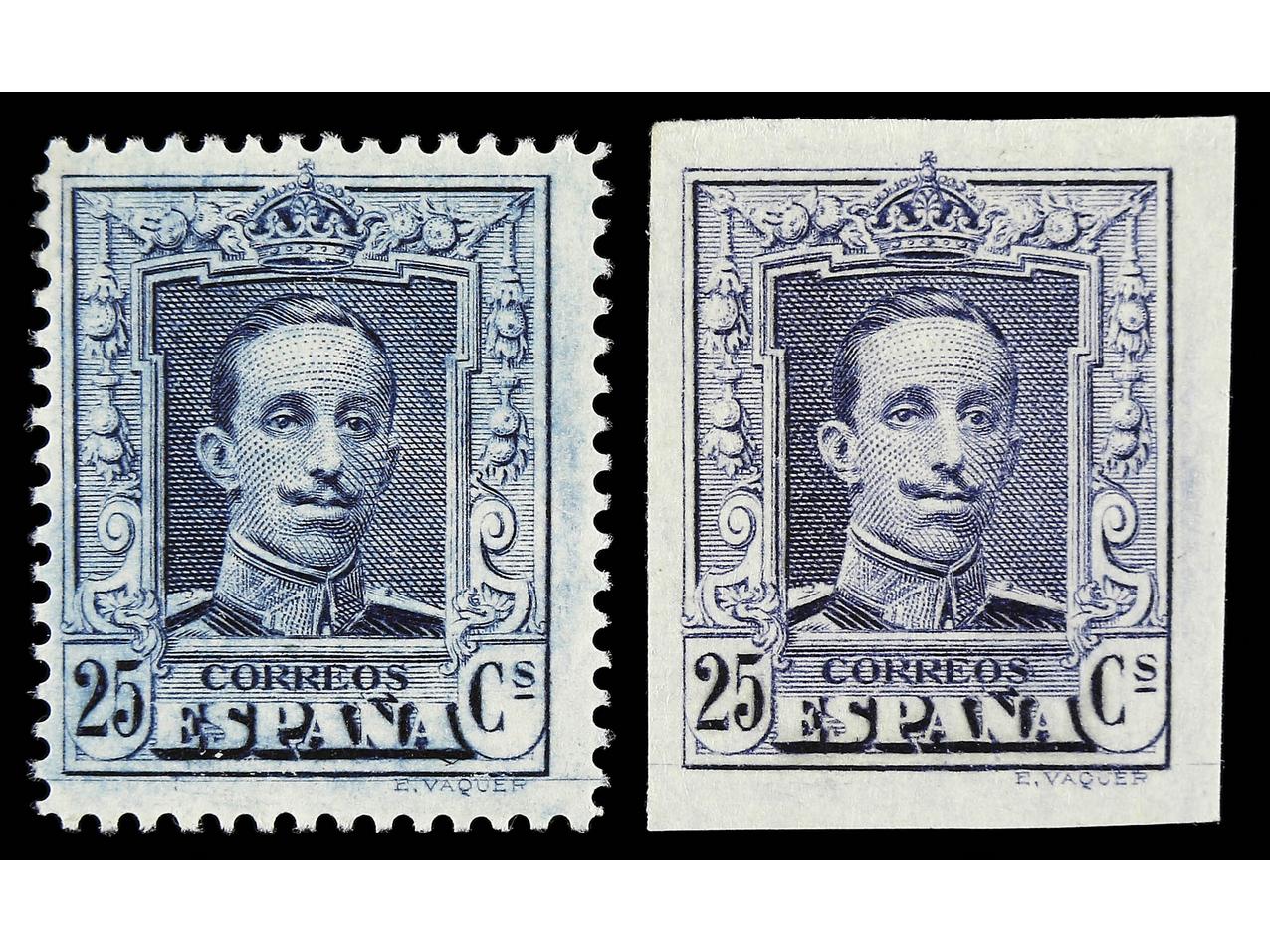 ESPAÑA. 25 c. azul, dentado y sin dentar, Tipo II. NO EXPENDIDOS. Ed.NE 24 y NE 24s. Cat. 585€. (Image1) (Image2)