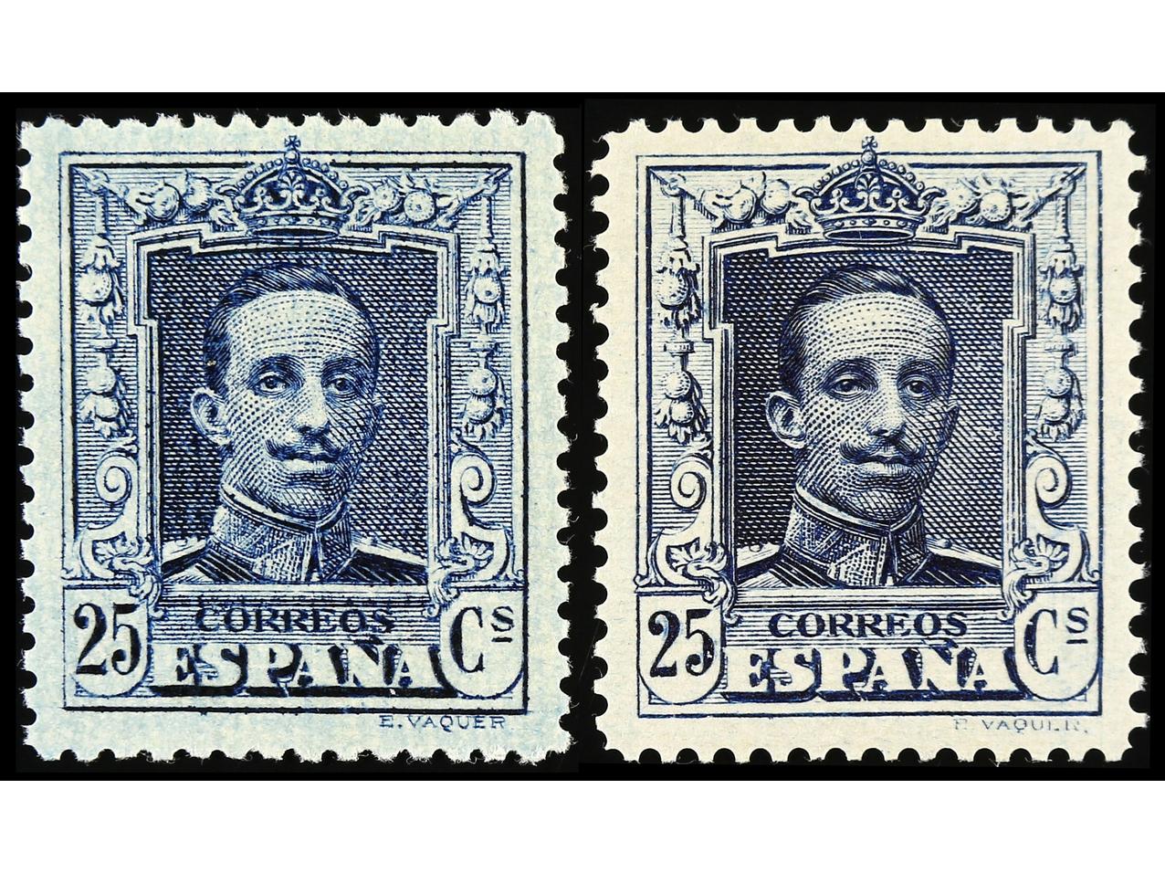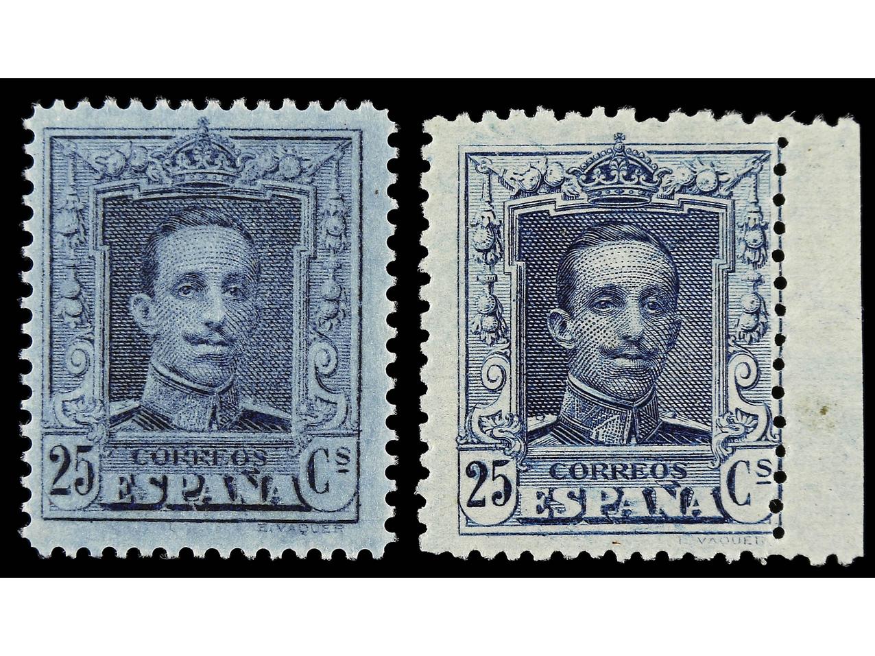 ESPAÑA. 25 c. azul, NO EXPENDIDOS. Centrados perfectos. Ed.NE 23, ** NE 24. Cat. 450€. (Image1) (Image2)
