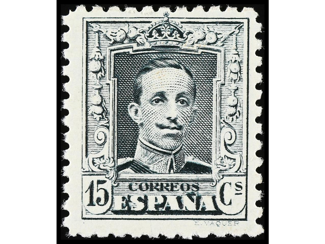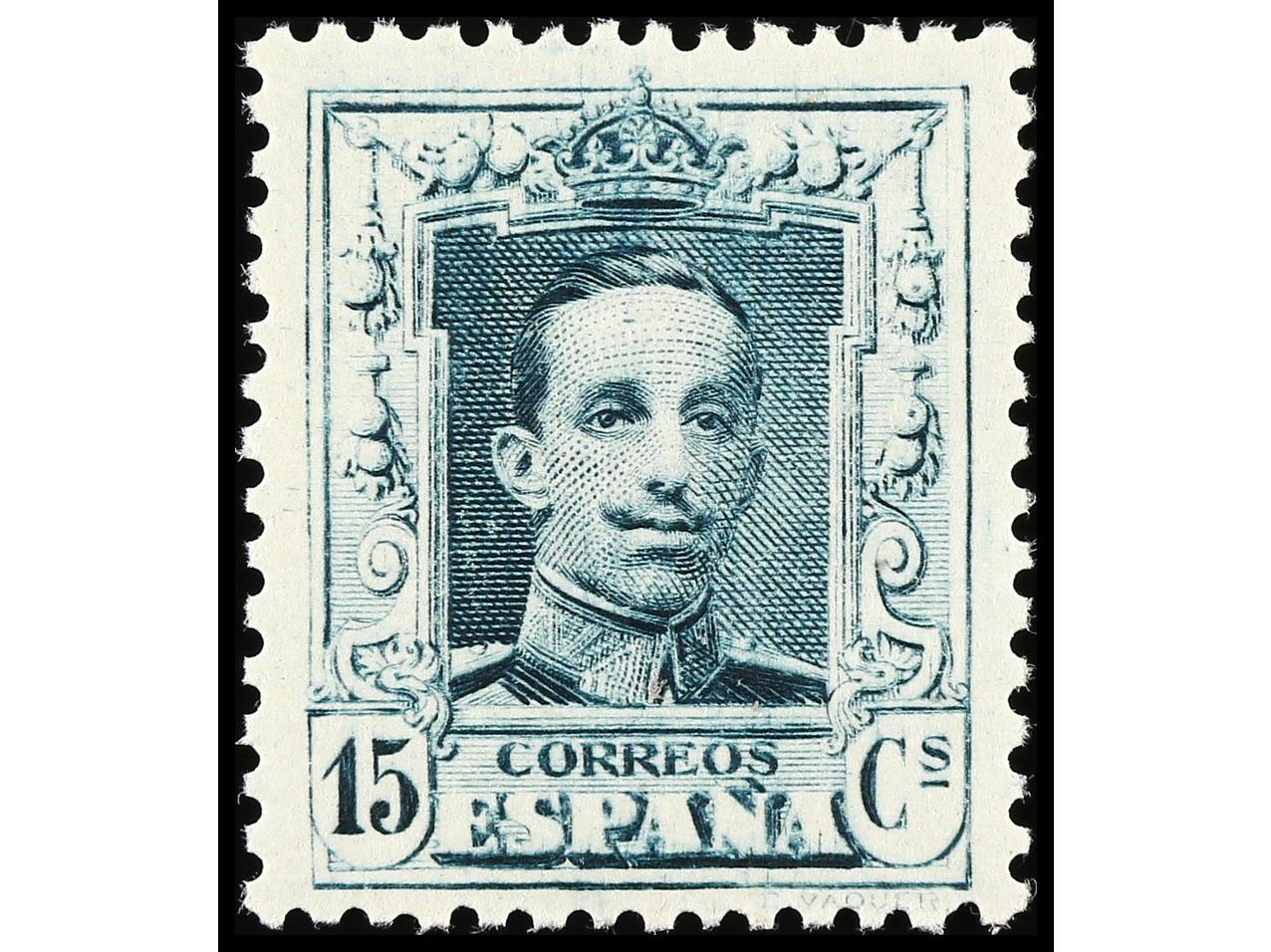 ESPAÑA. 15 c. gris azulado, con FILIGRANA DE BANCO. Ed.315Bp. Cat. 124€. (Image1)
