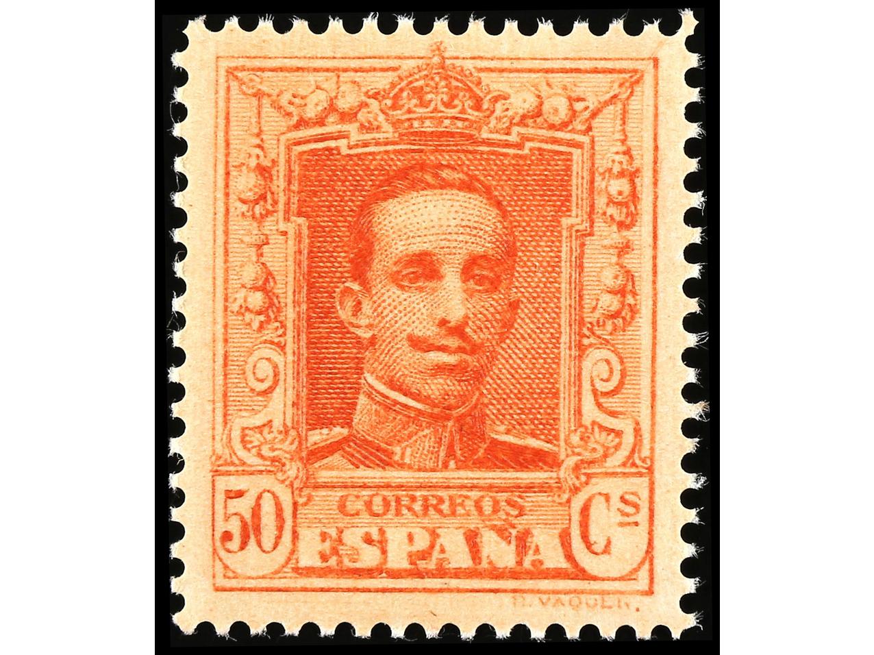 ESPAÑA. 50 cts. naranja. Borde de hoja. LUJO. Ed.320. (Image1)