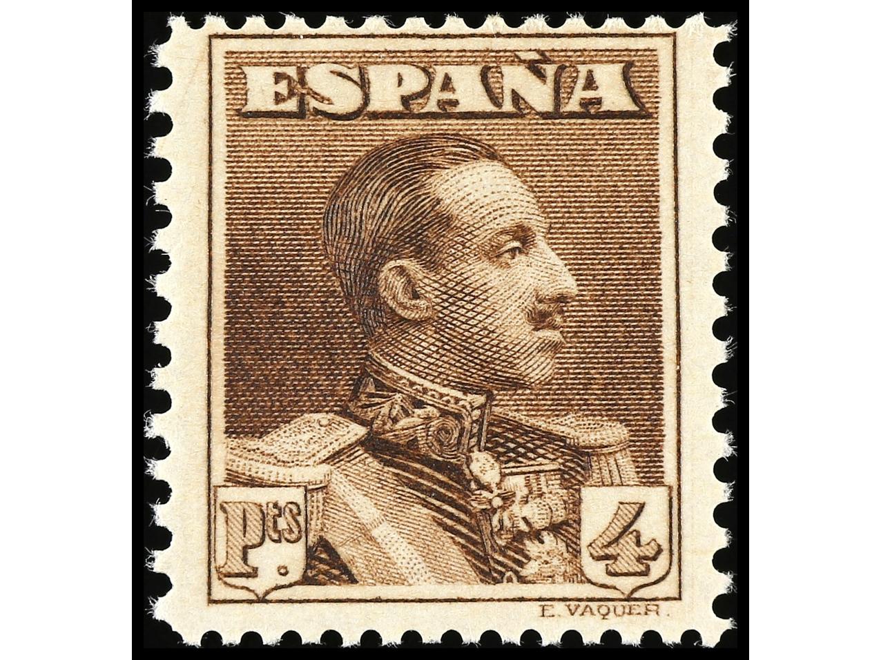 ESPAÑA. 4 pts. carmín violáceo. Numeración ceros. LUJO. Ed.322. Cat. +225€. (Image1)
