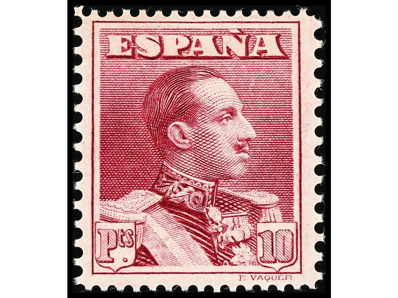ESPAÑA. 1 pta. gris SIN DENTAR MARGEN IZQUIERDO. MAGNÍFICO y RARO. Ed.321smi. Cat. 186€. (Image1)