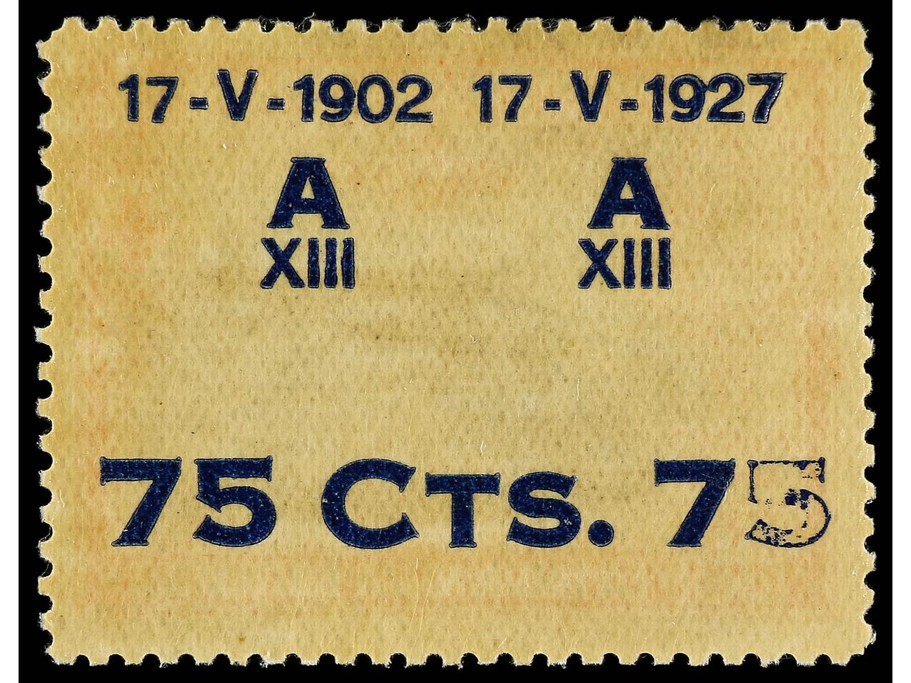 ESPAÑA. 75 cts. sobre 50 cts. naranja. HABILITACIÓN EN EL REVERSO. No reseñado RARO. Ed.391. (Image1)