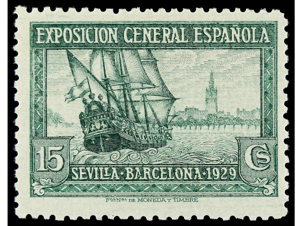 ESPAÑA. 15 cts. verde amarillento COLOR CAMBIADO. LUJO. Ed.438cc. Cat. +235€. (Image1)