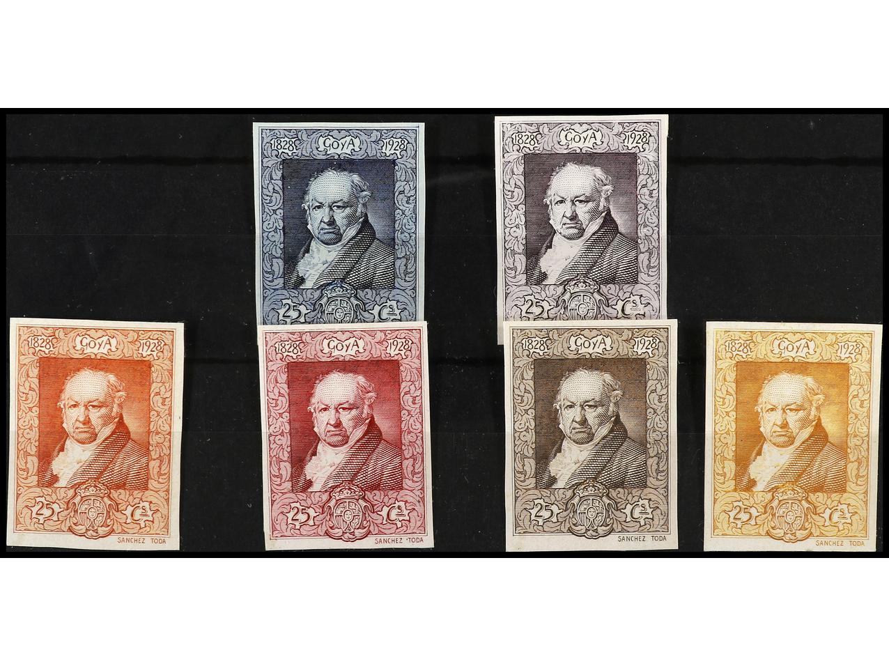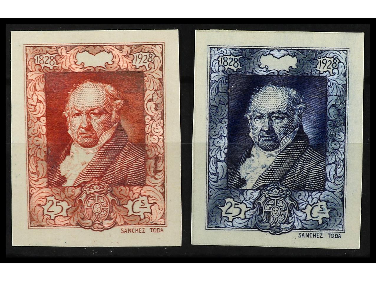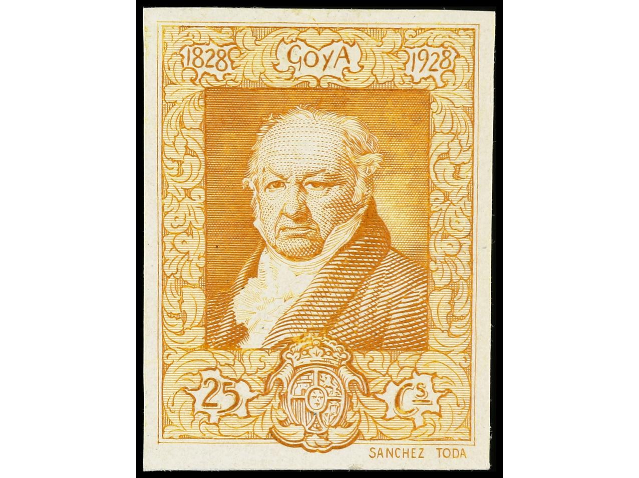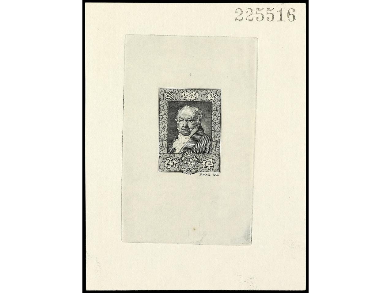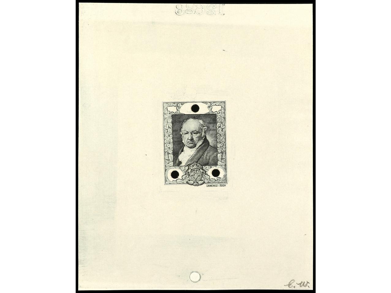 ESPAÑA. GOYA. PRUEBA DE PUNZÓN. Leyendas 1828-1928 en color negro. (Gálvez 2557). (Image1)