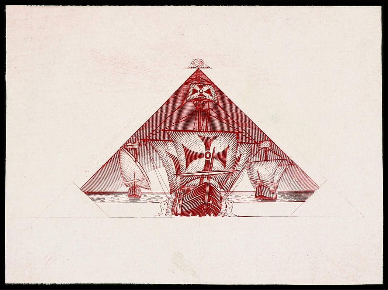 ESPAÑA. COLÓN. PRUEBA DE PUNZÓN. Sin valor y leyendas en color carmín. MUY RARA. (Gálvez 2653). (Image1)