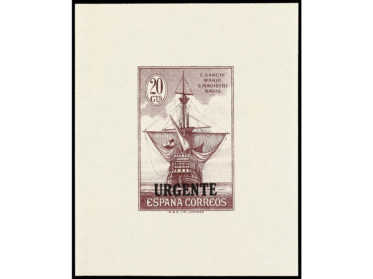 ESPAÑA. COLÓN. PRUEBA DEL REPORTE ORIGINAL. 20 cts. Urgente sobre papel engomado. No reseñada. MUY RARA. (Image1)