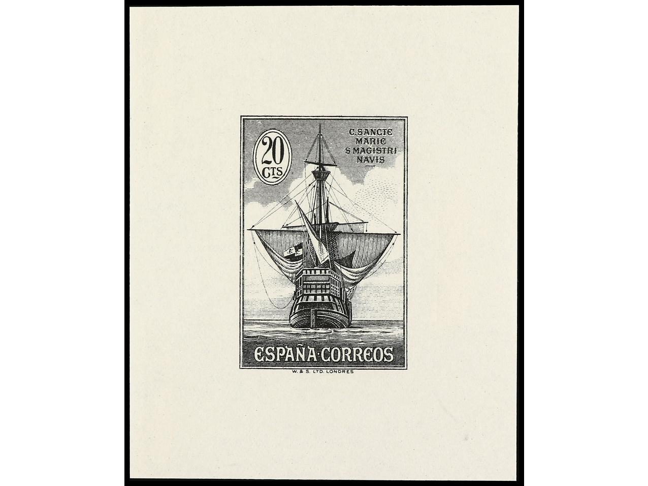 ESPAÑA. COLÓN. PRUEBA DE PUNZÓN. Sin valor y sin leyendas en color negro. MUY RARA. (Gálvez 2552). (Image1)