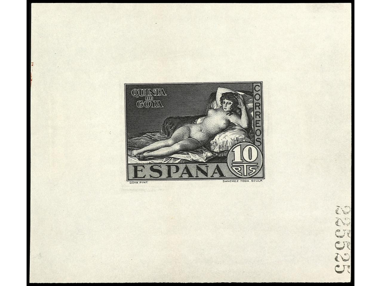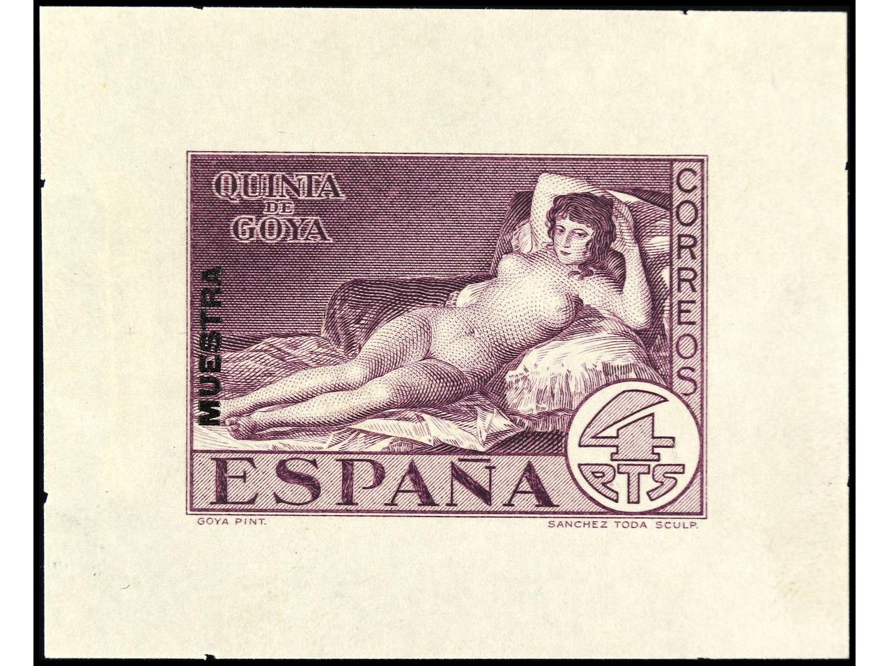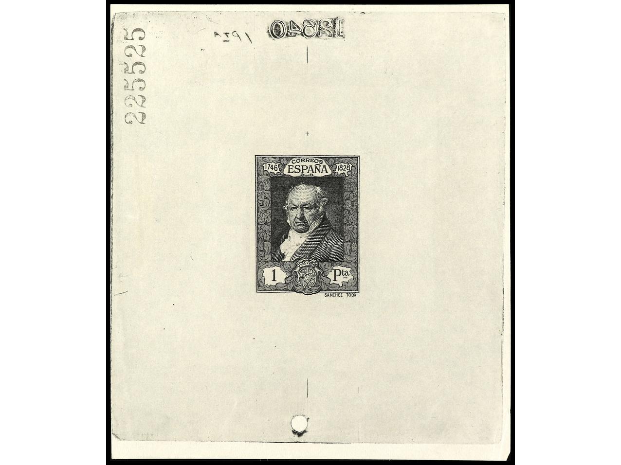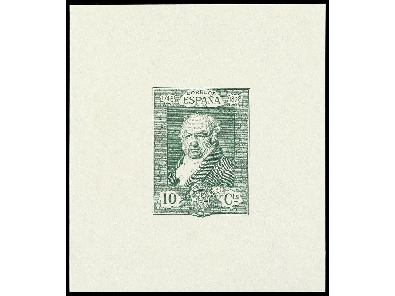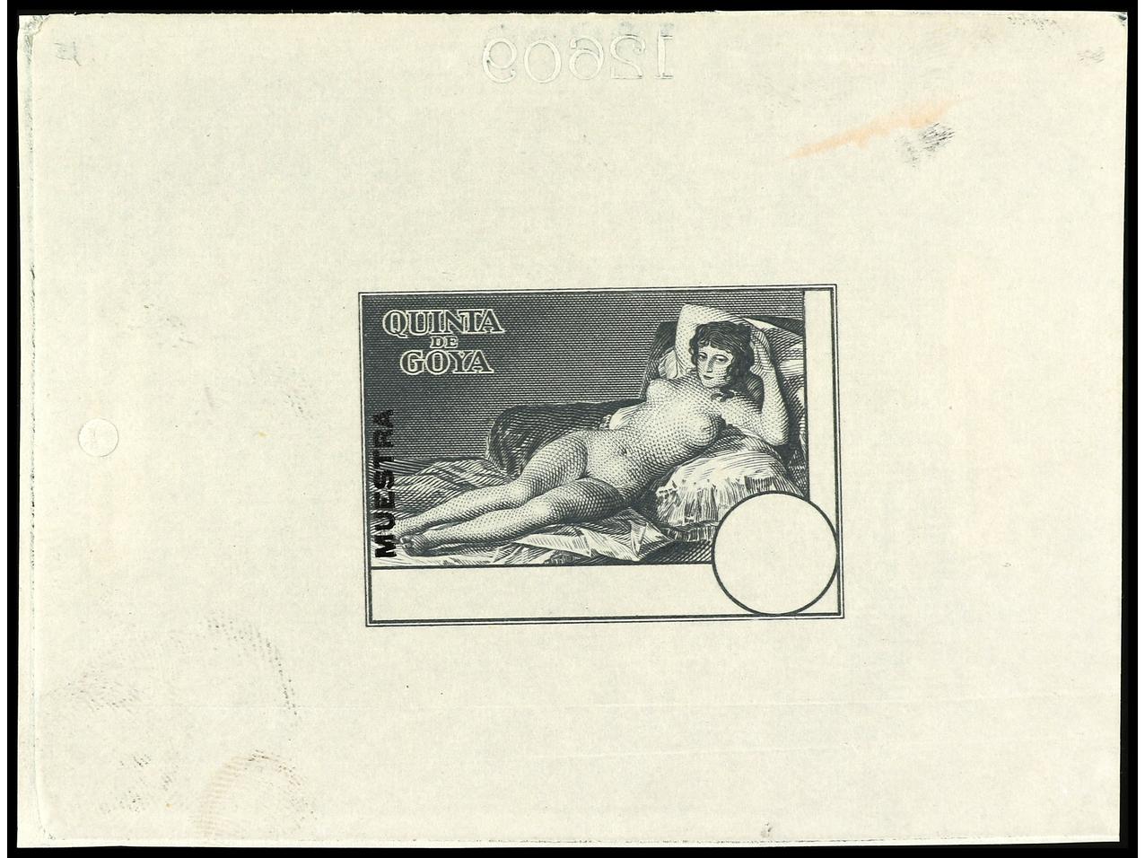 ESPAÑA. GOYA. PRUEBA DE PUNZÓN. Sin leyendas y el valor en negro con habilitación MUESTRA. RARA. (Gálvez 2605). (Image1)