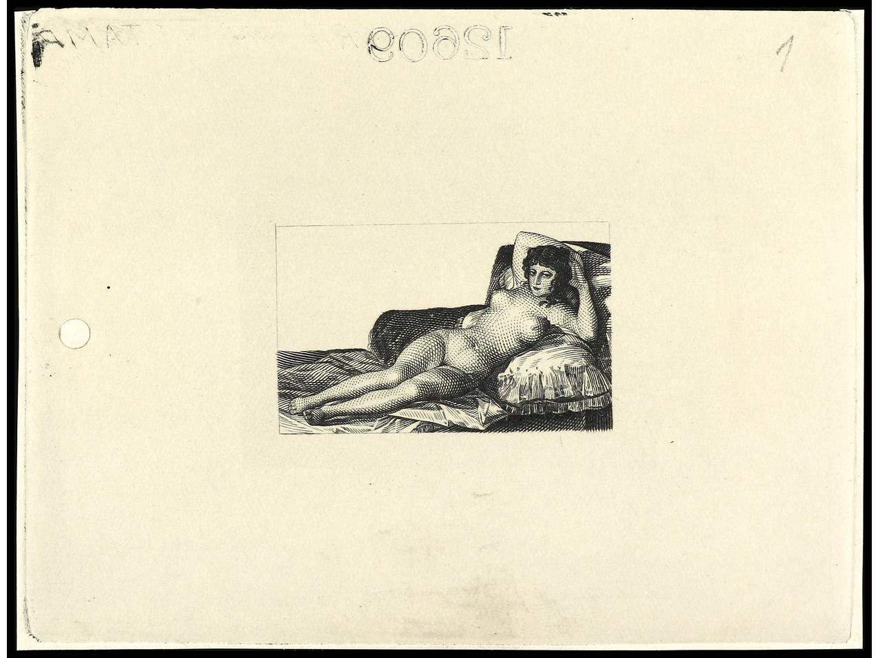 ESPAÑA. GOYA. PRUEBA DE PUNZÓN. Primer estado en negro. RARA. (Gálvez 2601). (Image1)