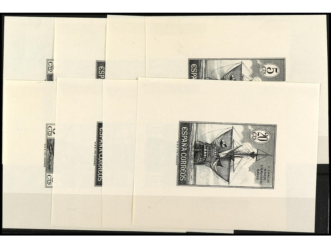 ESPAÑA. COLÓN. PRUEBAS DE LOS REPORTES LITOGRÁFICOS ORIGINALES. 8 pruebas sobre papel engomado en color negro. (Gálvez 2636/43). (Image1) (Image2)