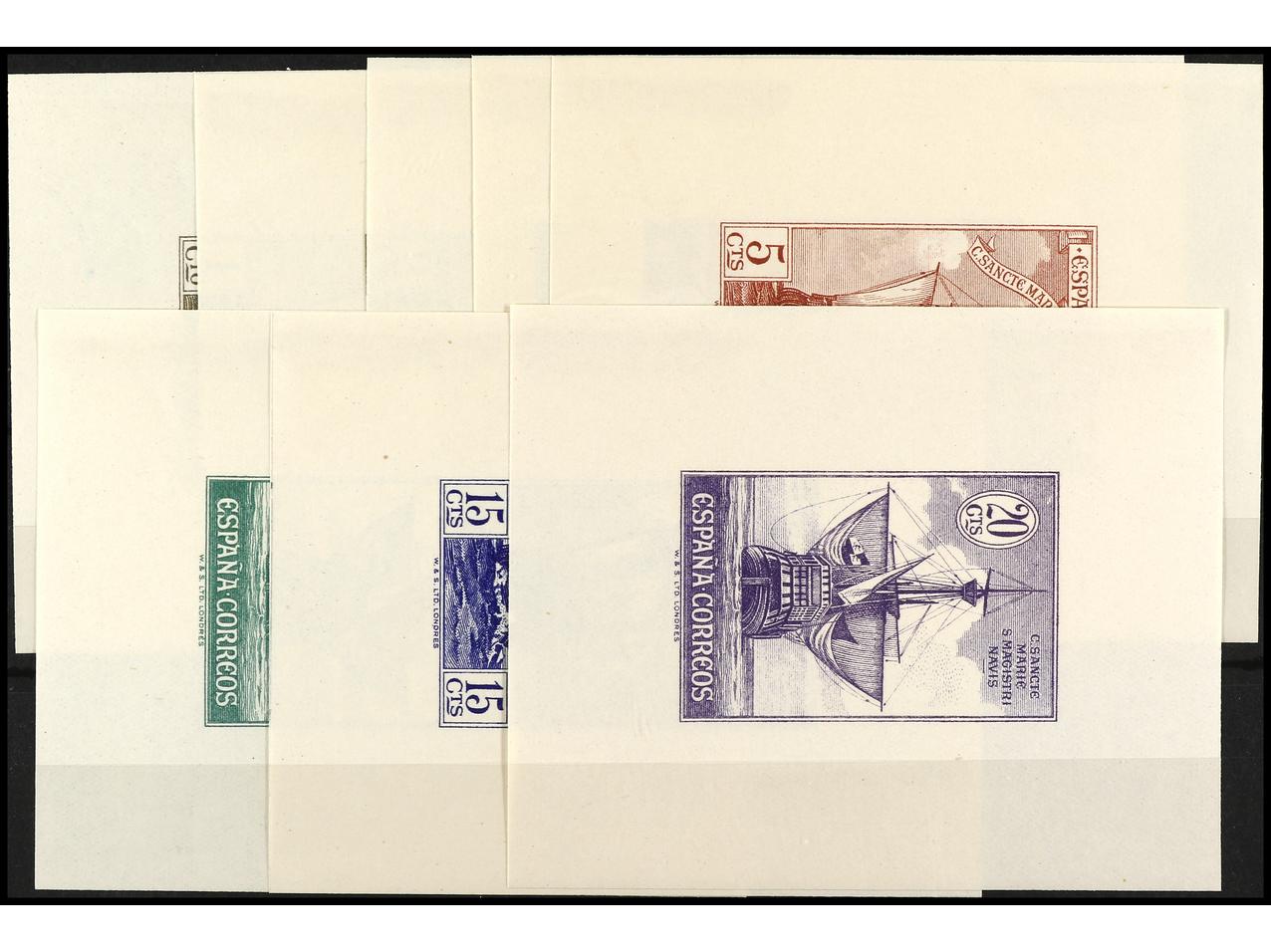 ESPAÑA. COLÓN. PRUEBAS DE LOS REPORTES LITOGRÁFICOS ORIGINALES. 8 pruebas sobre papel engomado en los colores adoptados. (Gálvez 2644/51). (Image1) (Image2)