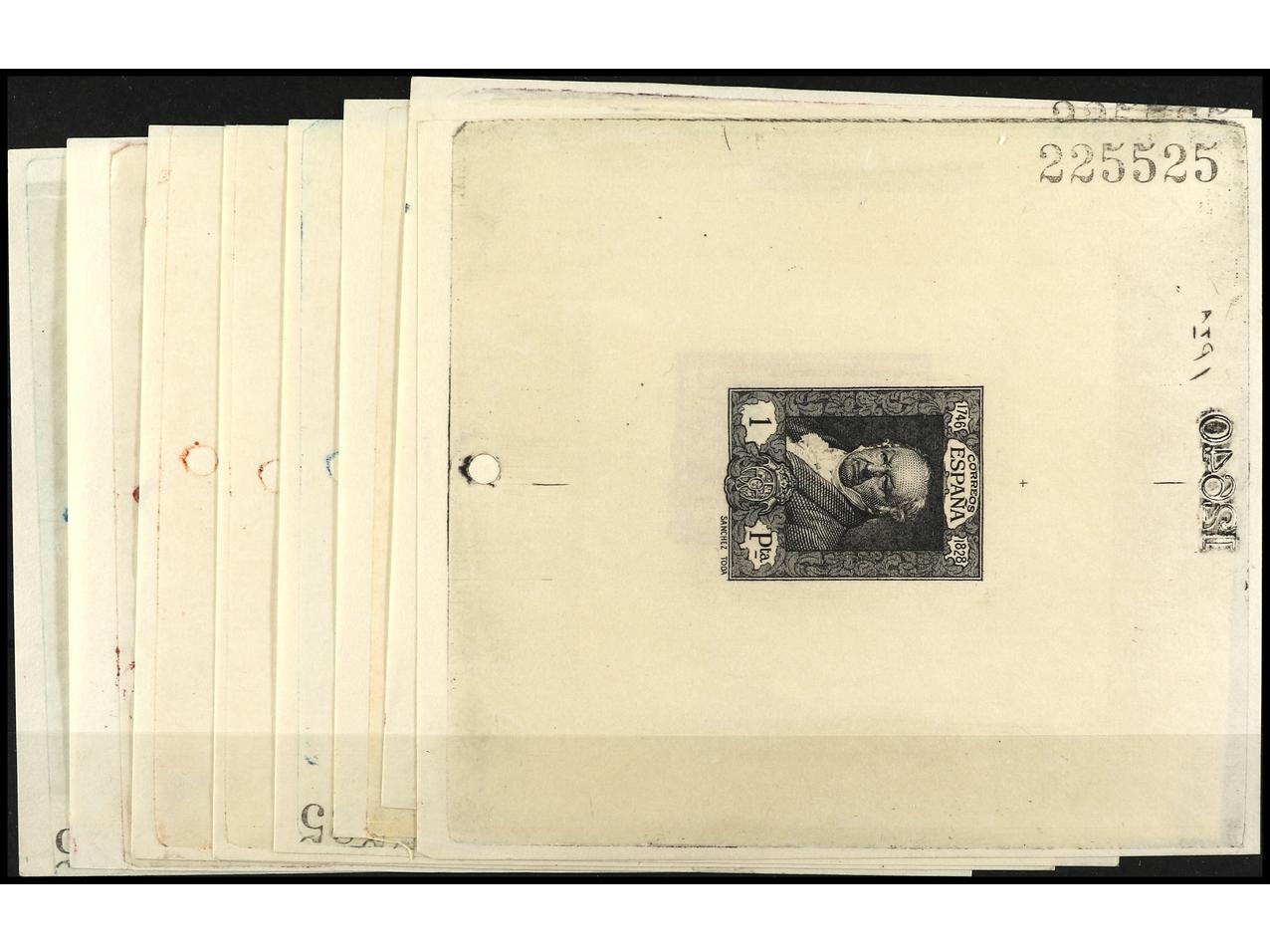 ESPAÑA. GOYA. PRUEBAS DE PUNZÓN. 8 pruebas en dos colores adoptados. (Gálvez 2590/97). (Image1) (Image2)