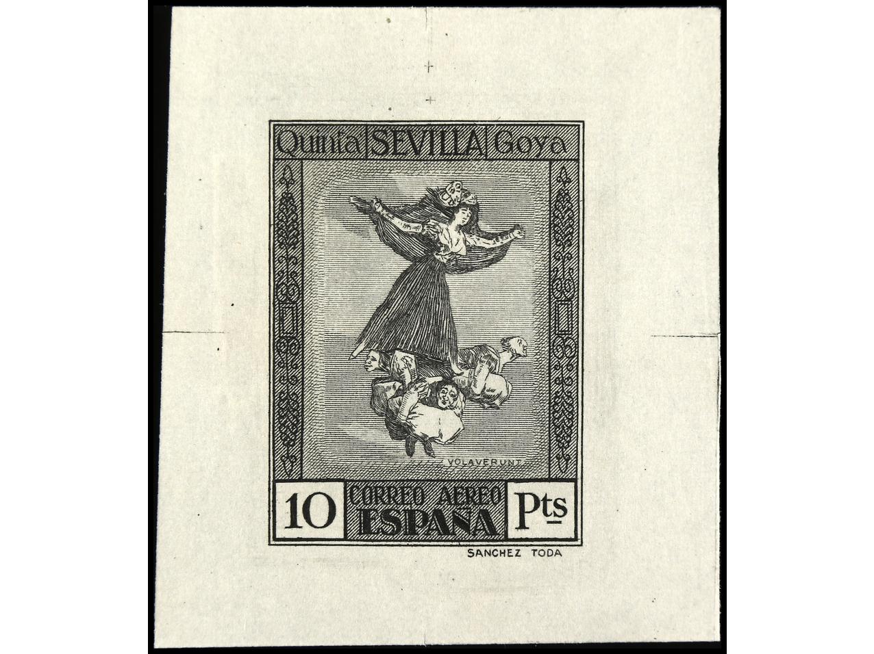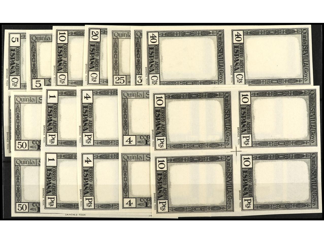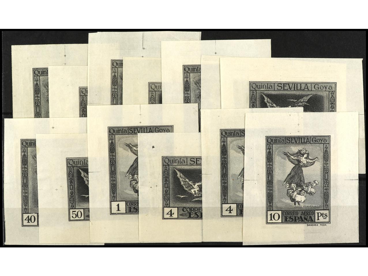ESPAÑA. GOYA. CORREO AÉREO. 13 PRUEBAS DE PUNZÓN grabado completo, sobre papel corriente. RARAS. (Gálvez CA 173/185). (Image1) (Image2)