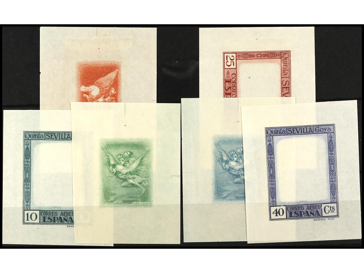 ESPAÑA. GOYA. CORREO AÉREO. 4 PRUEBAS DE PUNZÓN. Segundo estado sobre cartulina estucada. No reseñada. MUY RARAS. (Image1) (Image2)