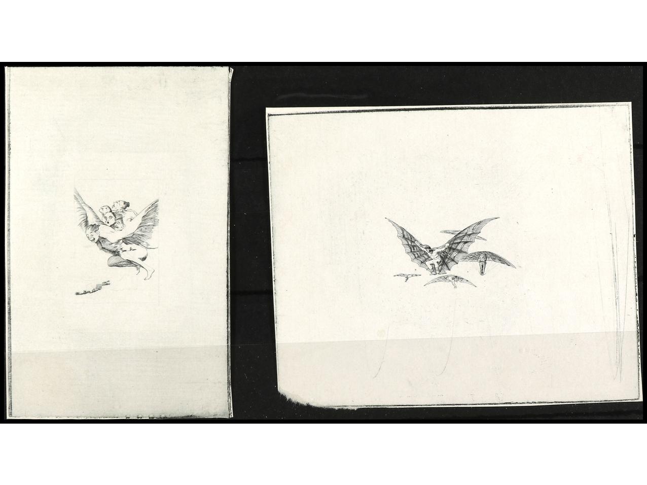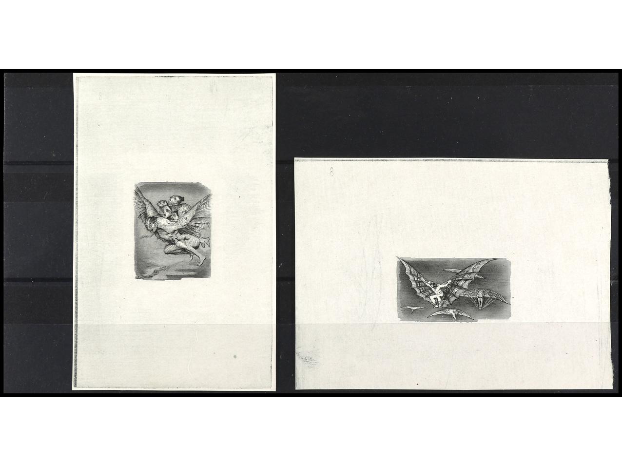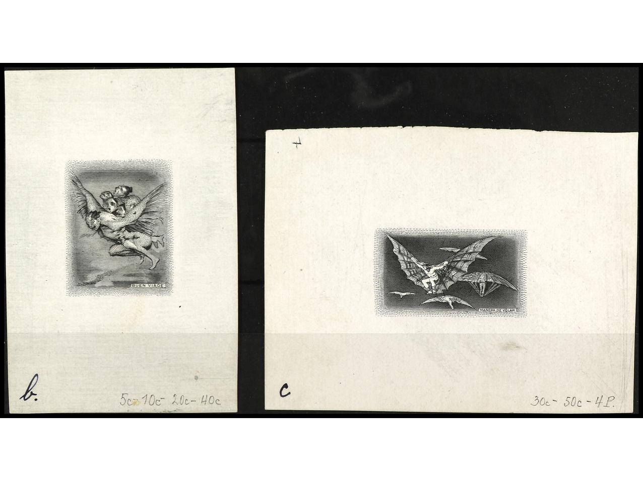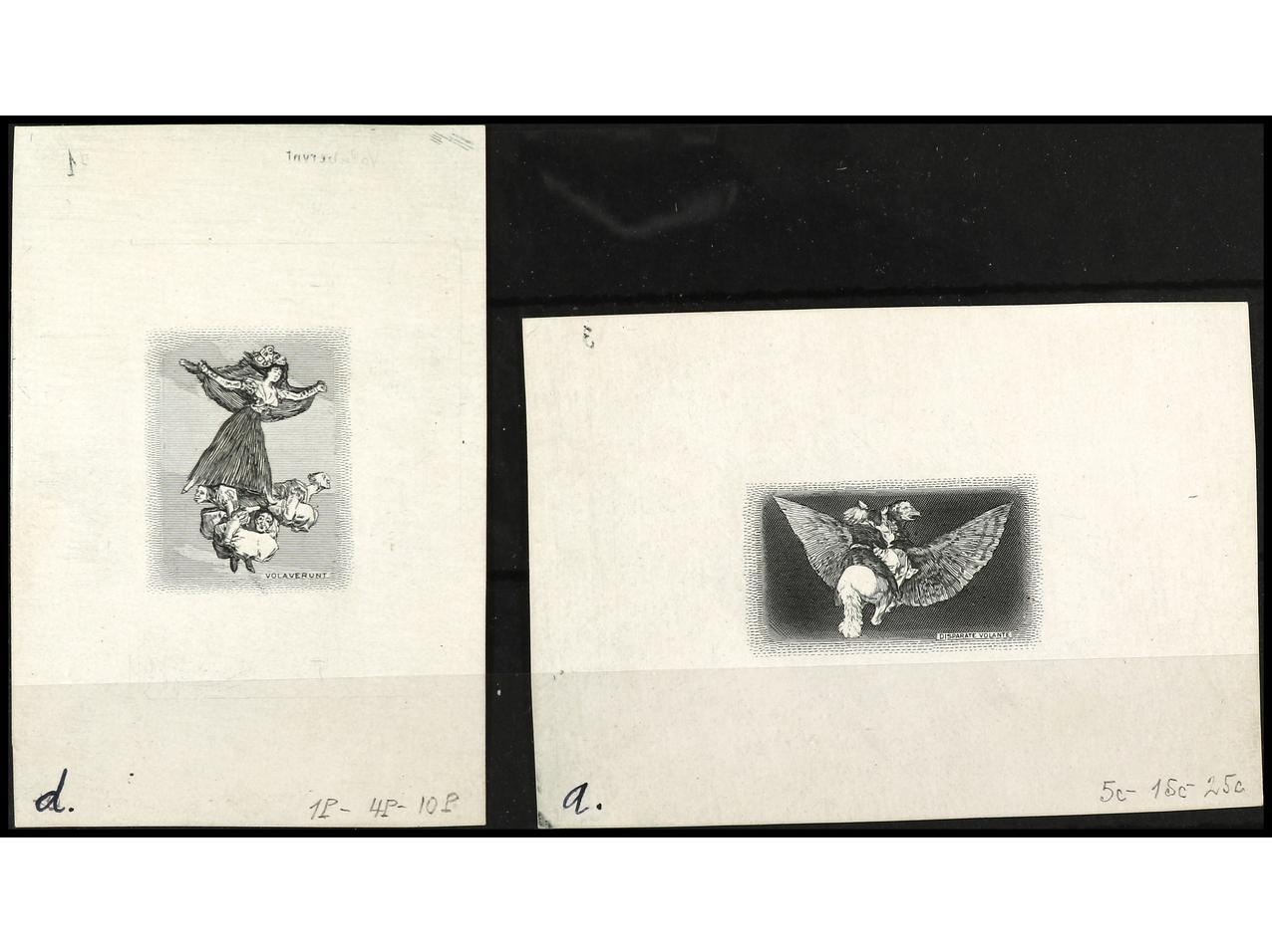 ESPAÑA. GOYA. CORREO AÉREO. 4 PRUEBAS DE PUNZÓN. Grabado terminado sobre cartulina estucada. MUY RARAS. (Gálvez CA 111/14). (Image1) (Image2)