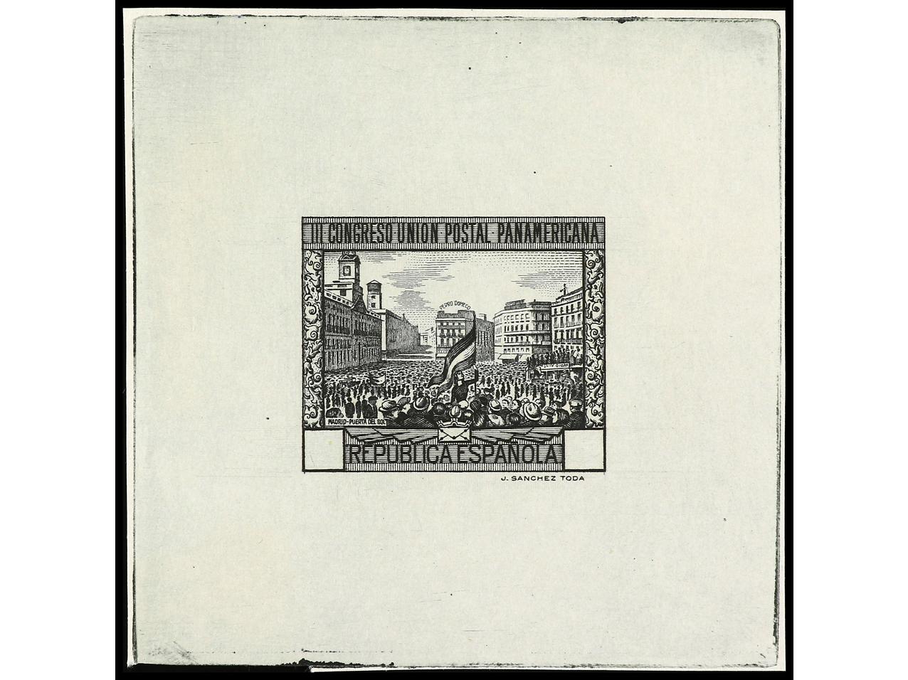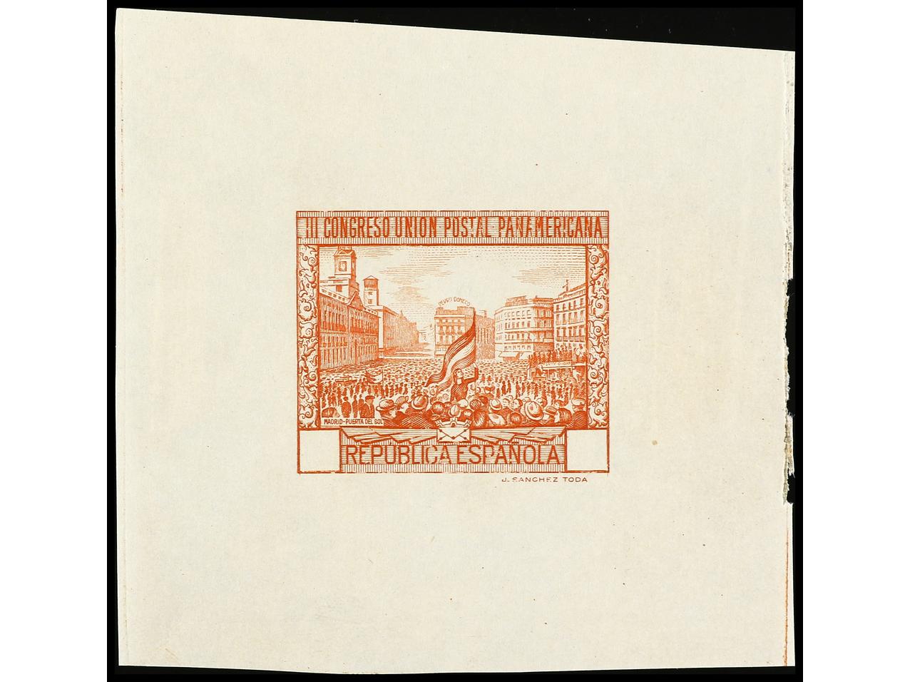 ESPAÑA. UNIÓN POSTAL PANAMERICANA. PRUEBA DE PUNZÓN sin el valor indicado en color negro. RARA. (Gálvez 2863). (Image1)