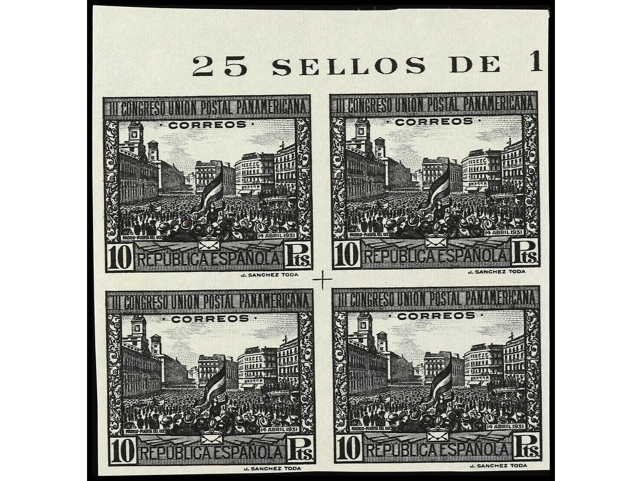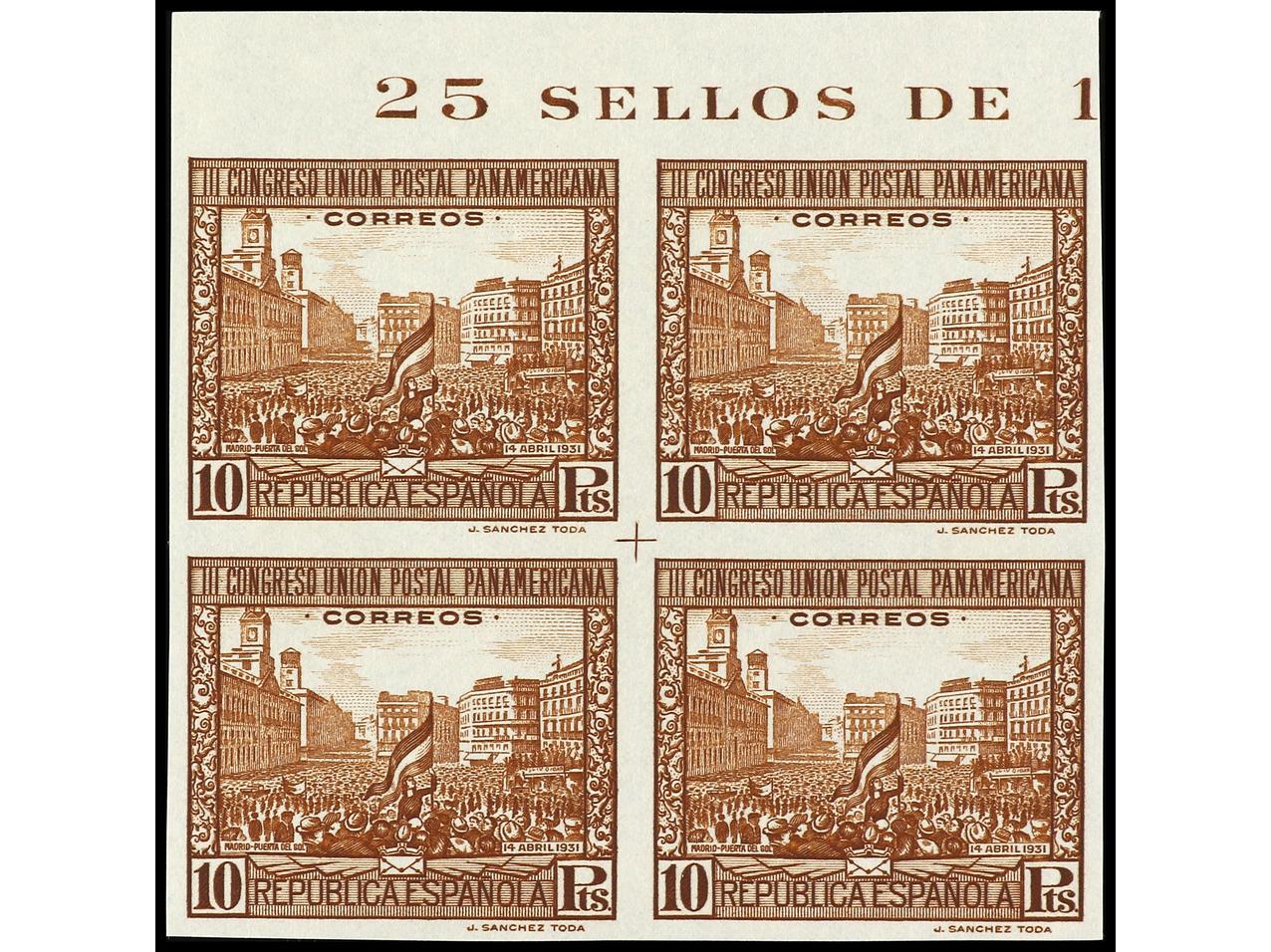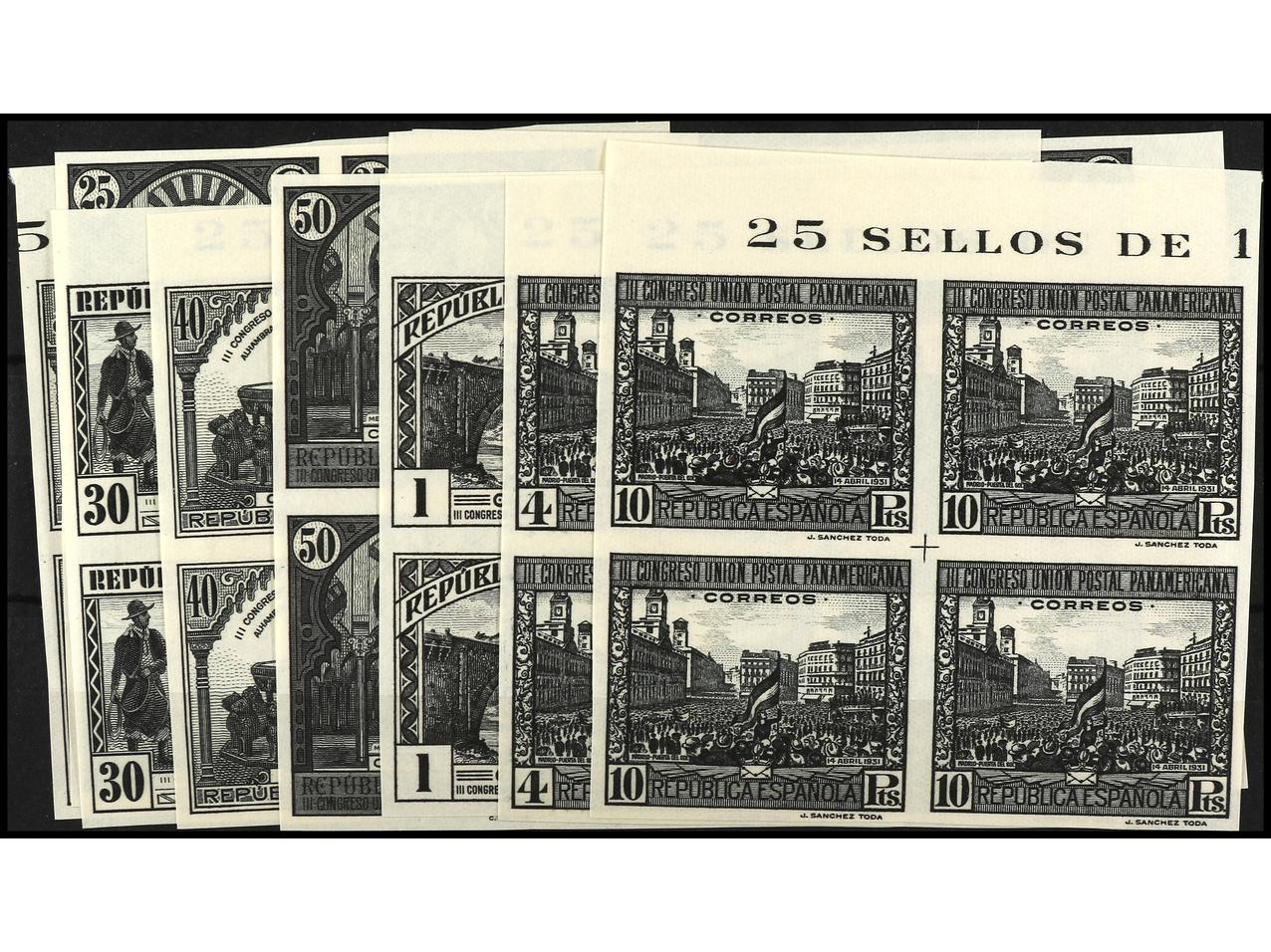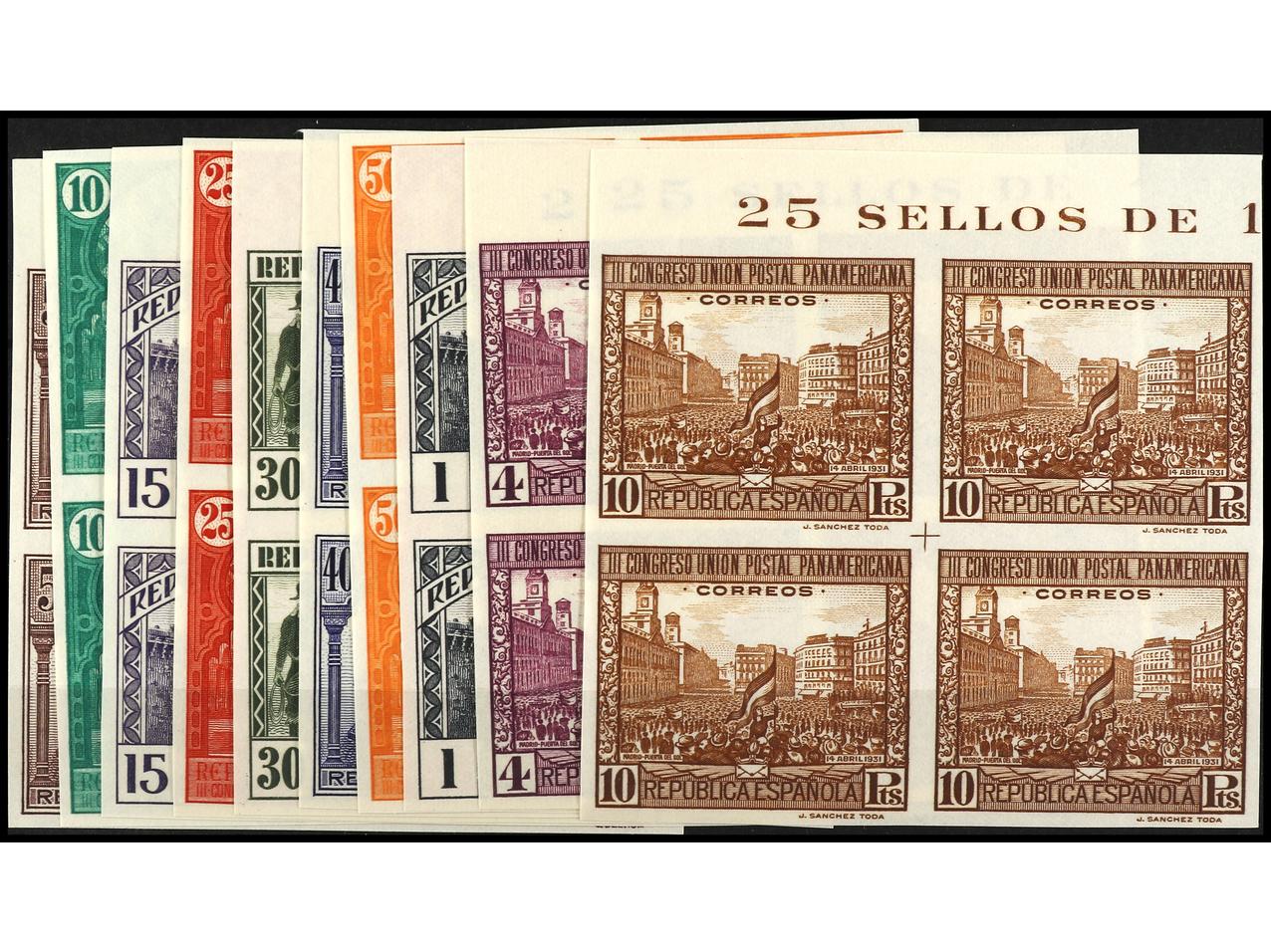 ESPAÑA. UNIÓN POSTAL PANAMERICANA. ENSAYOS DE PLANCHA. Serie completa de 10 valores sin dentar en bloques de cuatro. (Gálvez 2900/09). (Image1) (Image2)