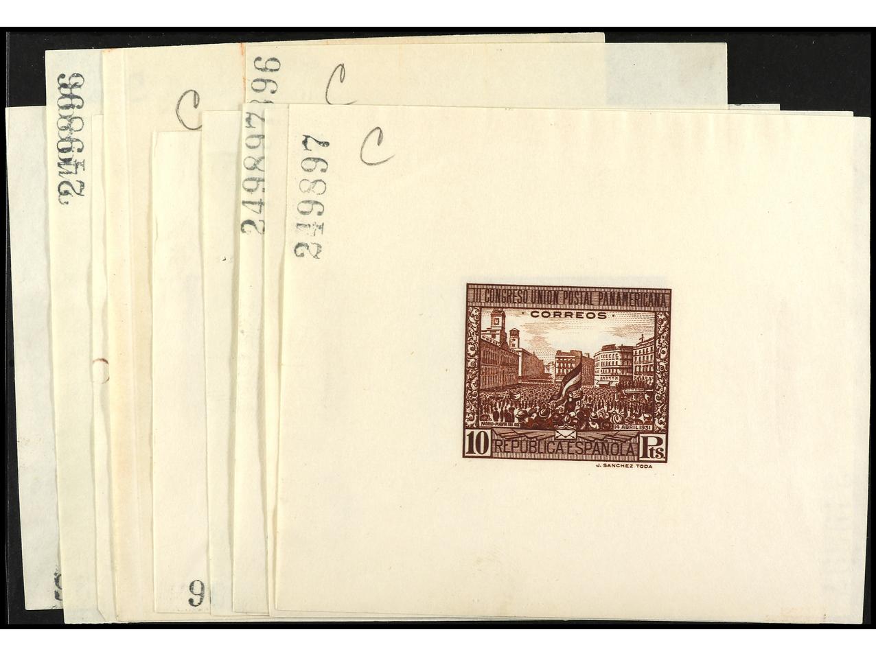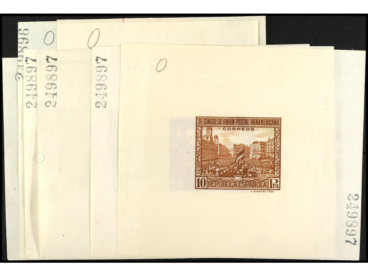 ESPAÑA. UNIÓN POSTAL PANAMERICANA. PRUEBAS DE PUNZÓN. 10 pruebas con los colores de la serie para el Servicio Oficial. RARAS. (Gálvez 2888/97).