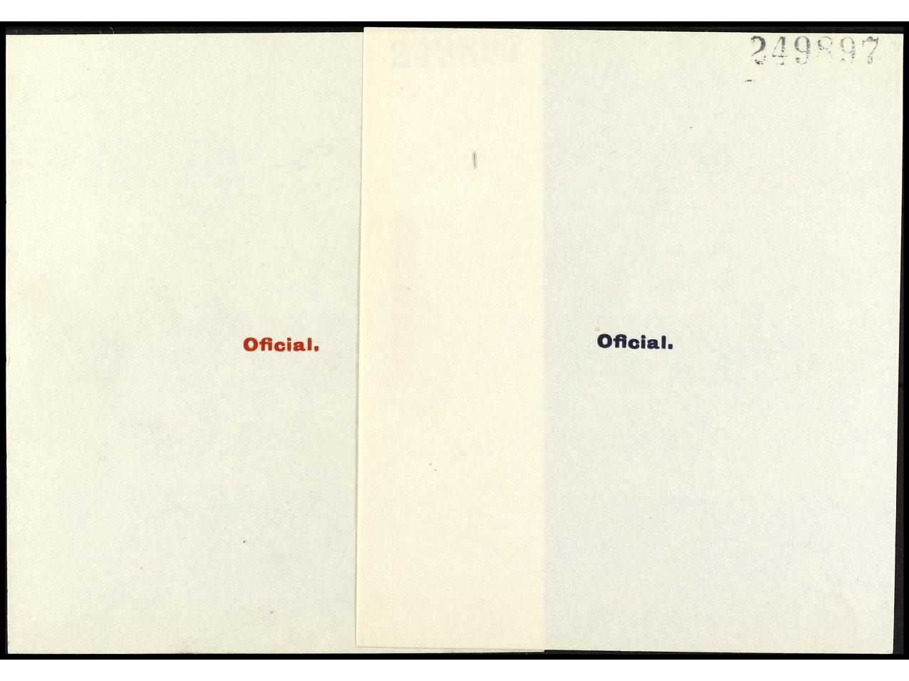 ESPAÑA. UNIÓN POSTAL PANAMERICANA. PRUEBAS DE PUNZÓN. Dos pruebas con la habilitación OFICIAL en colores rojo y azul. (Gálvez 2898/99). (Image1) (Image2)