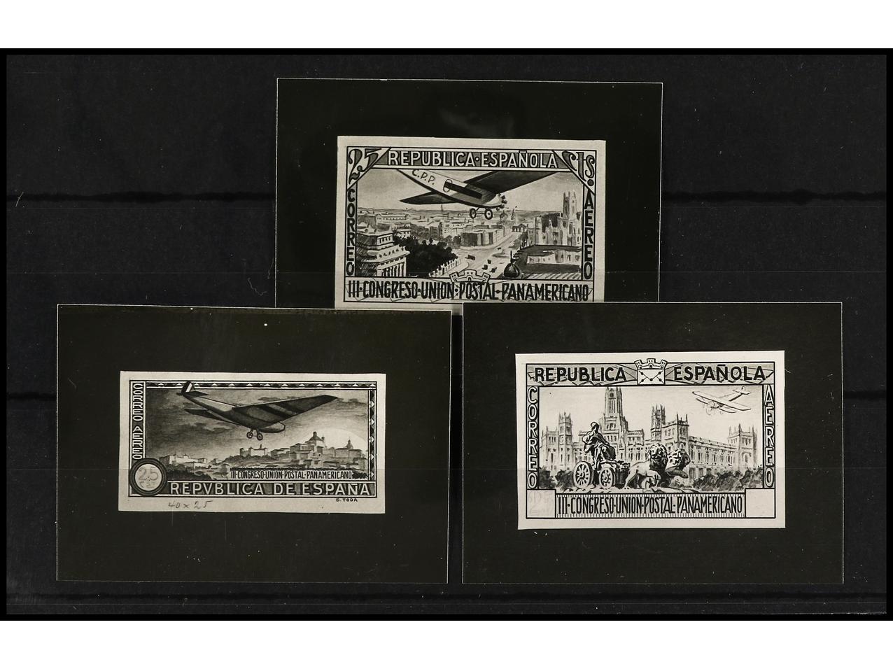 ESPAÑA. UNIÓN POSTAL PANAMERICANA. CORREO AÉREO. Conjunto de 3 pruebas fotográficas originales. (Image1) (Image2)