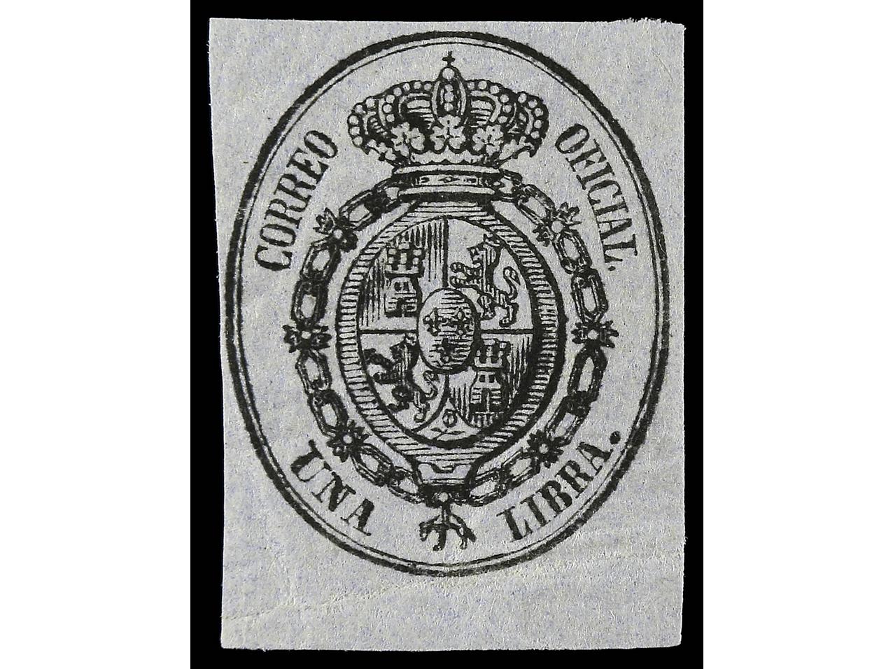 ESPAÑA. 1 real azul verdoso. LUJO. RARO en esta calidad. Cert. COMEX. Ed.41. Cat. +1.900€. (Image1) (Image2)