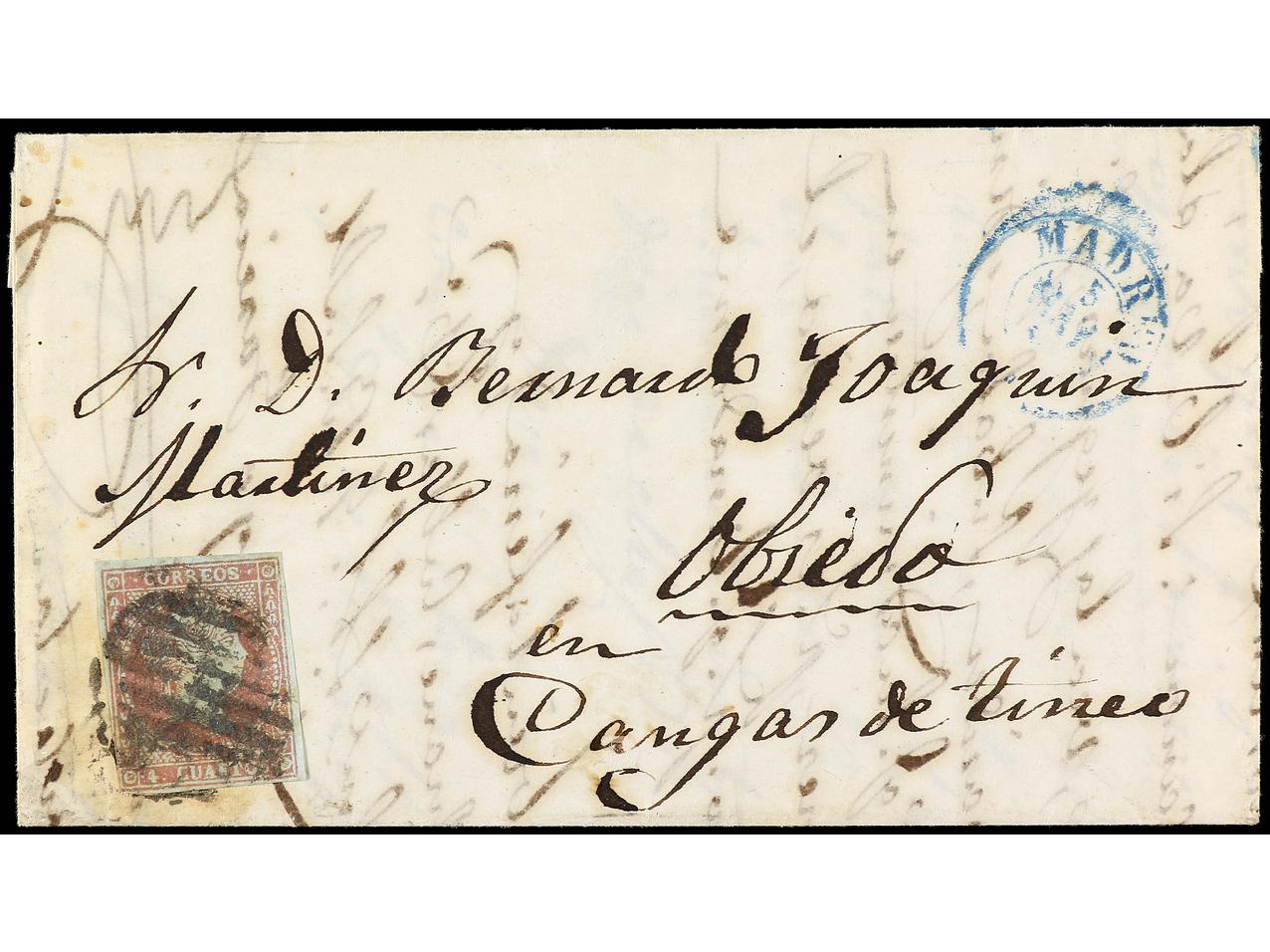 ESPAÑA. 1855 ca. Envuelta sin fechar de MADRID a OVIEDO. 4 cuartos FALSO POSTAL. Graus-Soro 5F. Cert. SORO. Ed.40F. (Image1) (Image2)