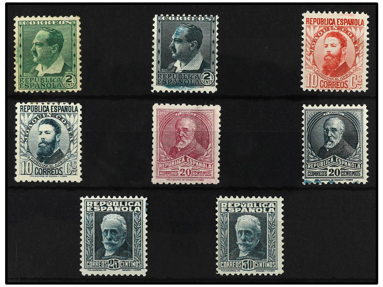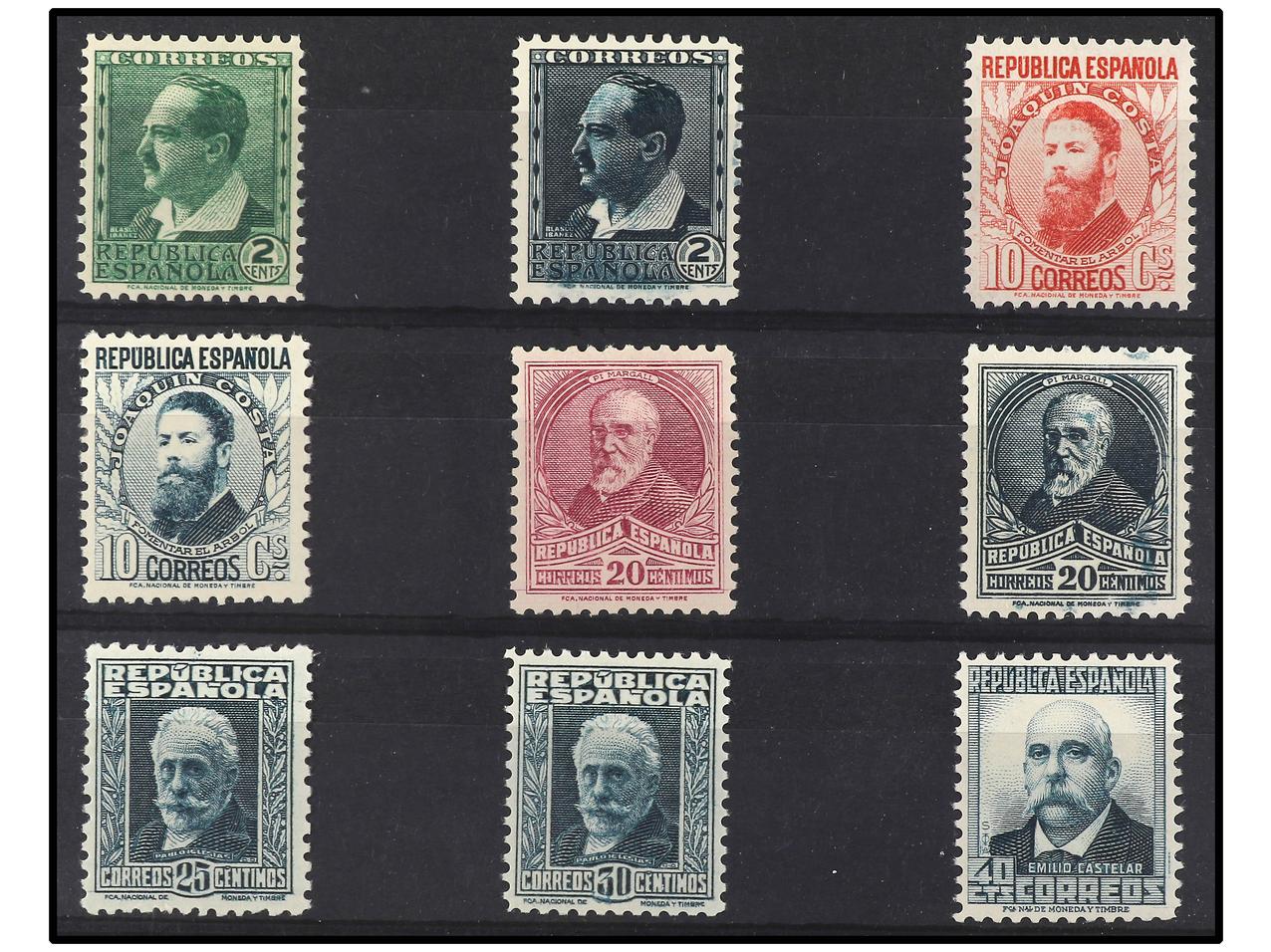 ESPAÑA. 2 cts. a 30 cts. 8 valores, COLORES CAMBIADOS. Ed.662/9cc. Cat. +553€. (Image1) (Image2)