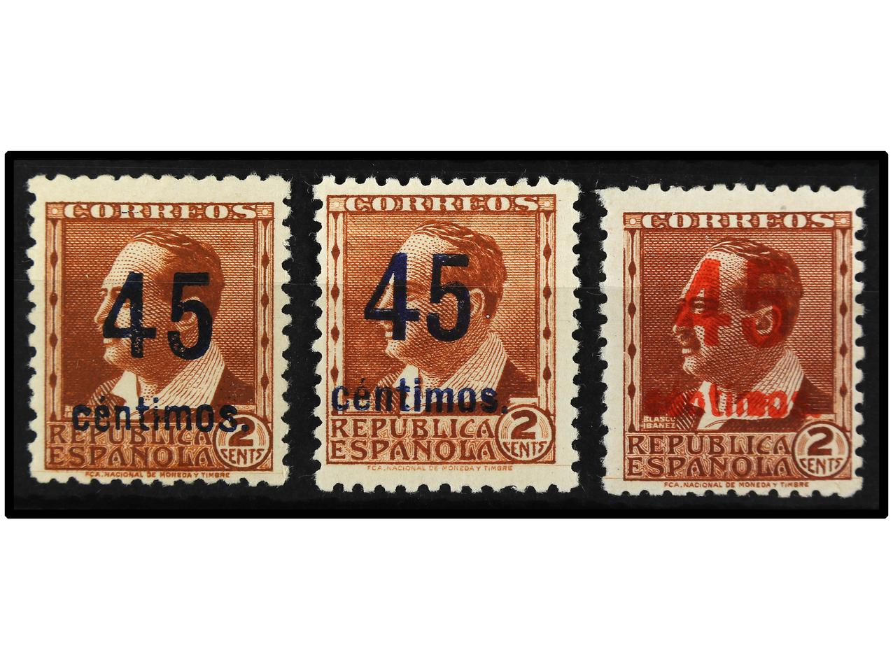 ESPAÑA. SERIE COMPLETA, 3 valores. NO EXPENDIDOS. Habilitaciones en negro, azul y rojo. Ed.NE 28, 28a y 28b. (Image1) (Image2)