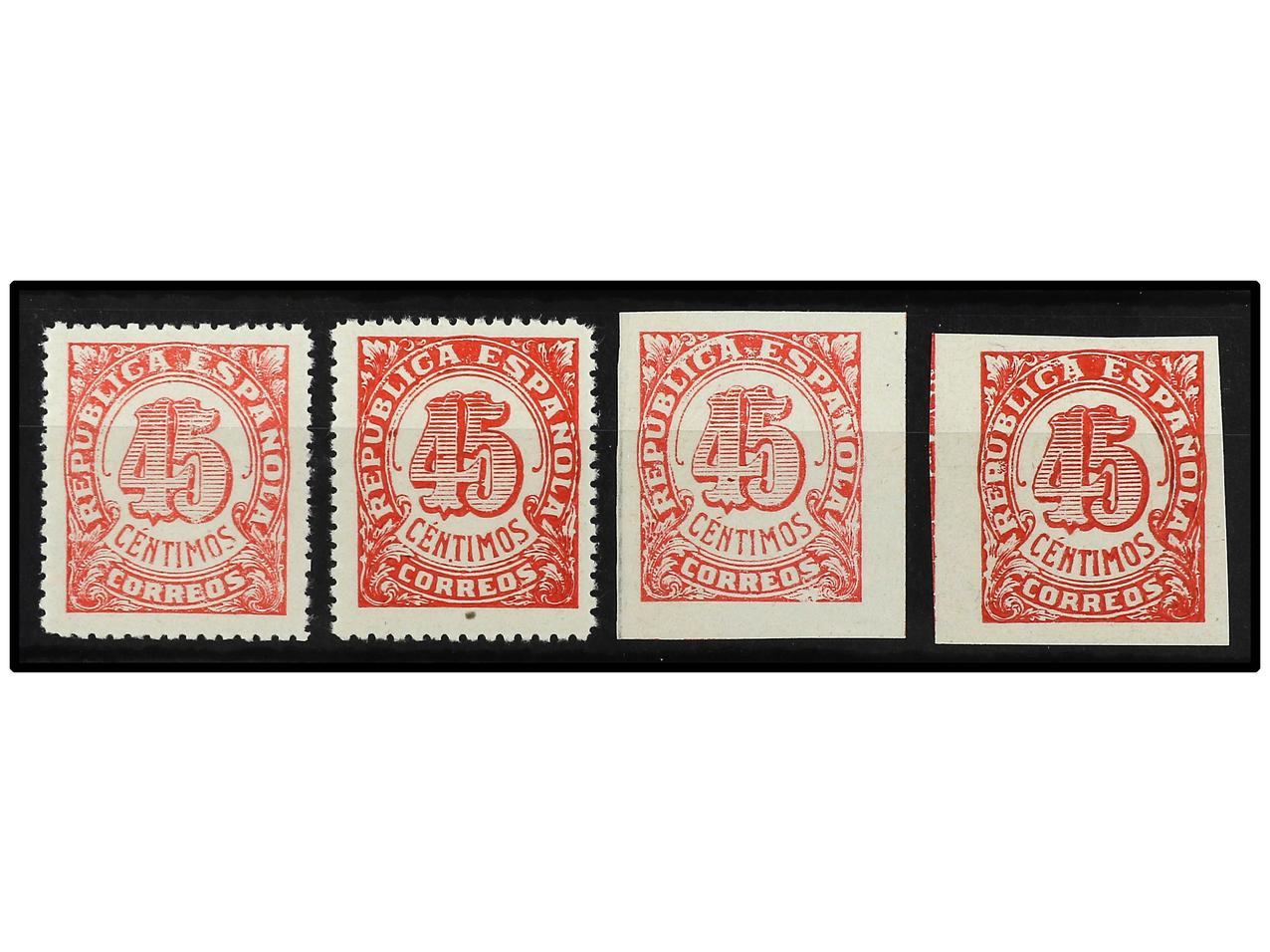 ESPAÑA. 45 cts. rosa y 45 cts. carmín NO EXPENDIDOS. Dentados y SIN DENTAR. LUJO. Ed.NE 29/30 y NE 29/30s. Cat. +400€. (Image1) (Image2)