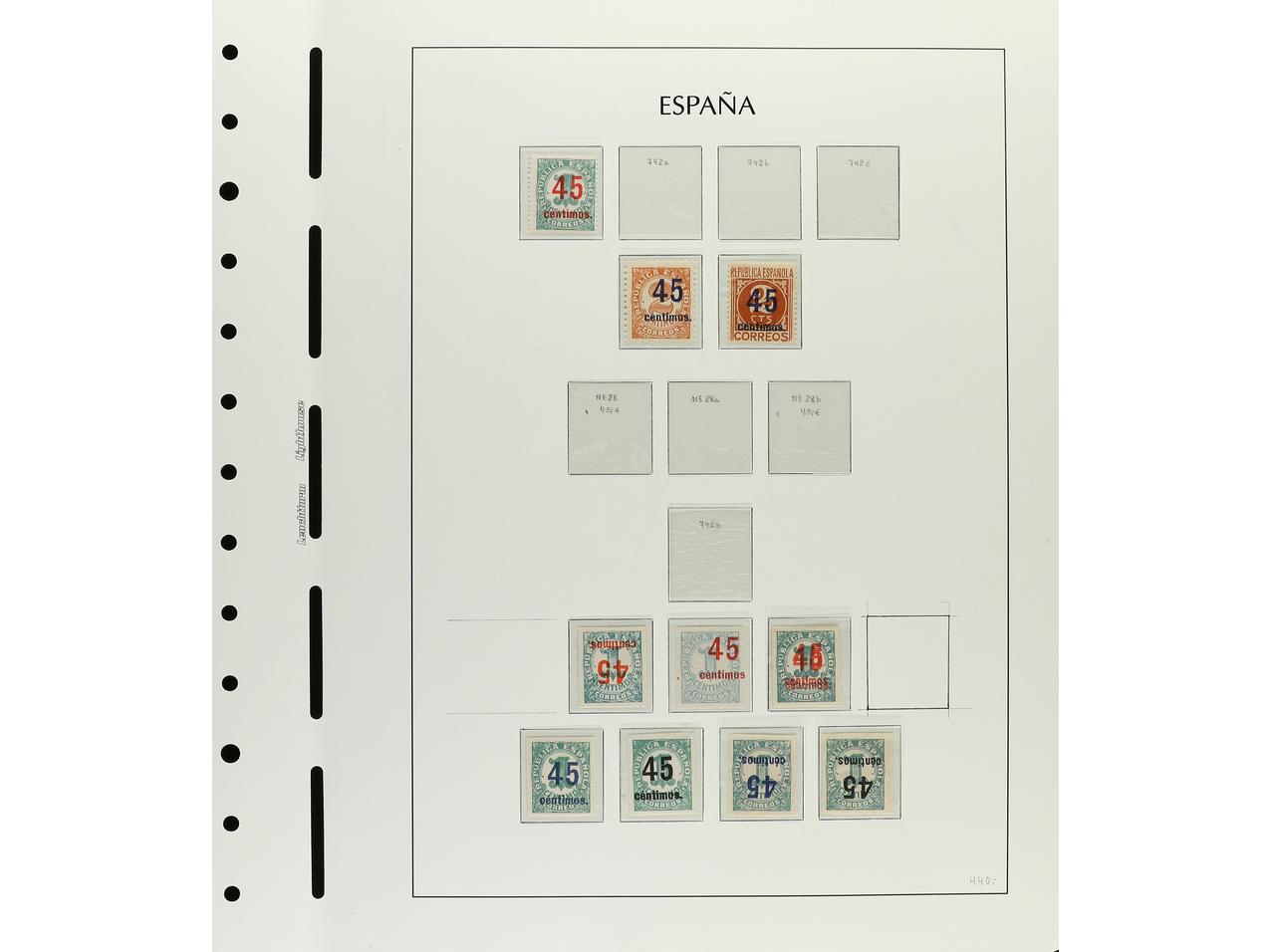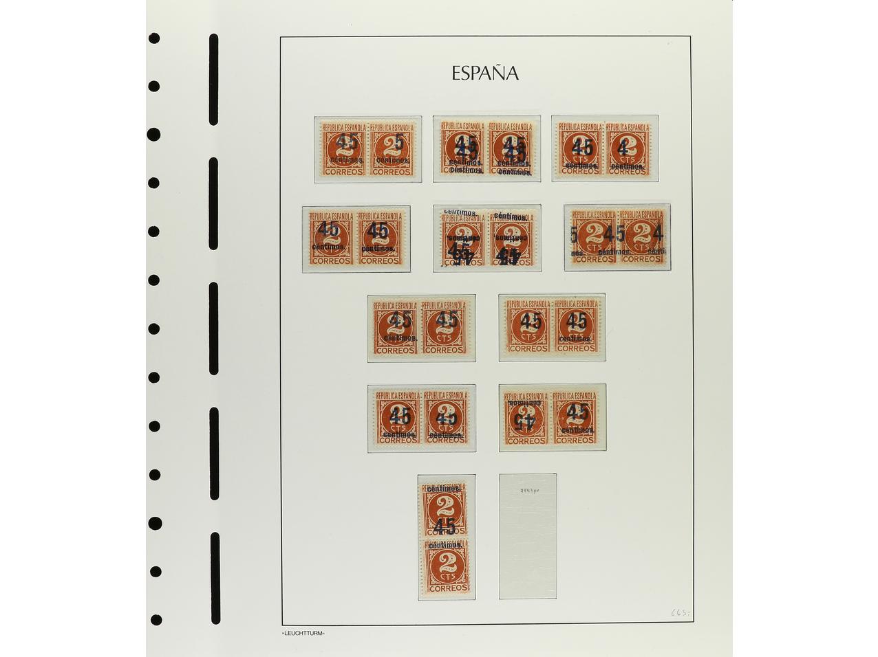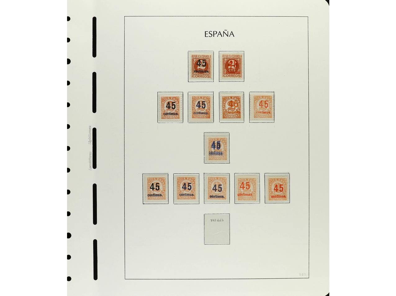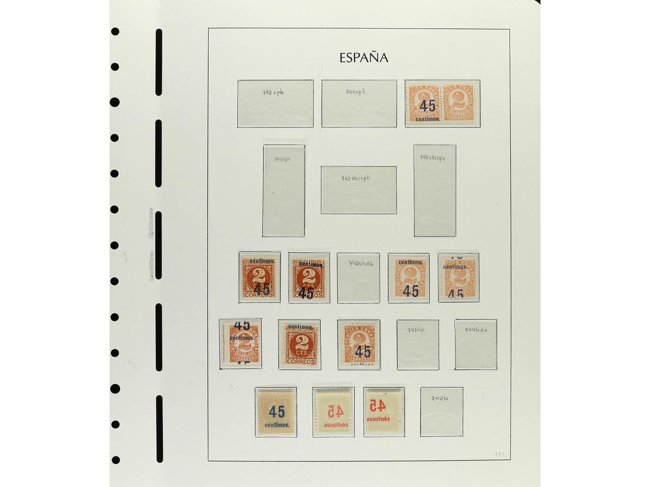 ESPAÑA. CONJUNTO en hojas de álbum Faro neutrales con sellos tipo y variedades de DENTADO, TRANSFERIDO, IMPRESIÓN, etc. Hay raras destacando 744tc (2), td (1) y te (3). Total 65 ejemplares. Alto valor en catálogo. Foto en web. Ed.742/4. (Image1) (Image2)