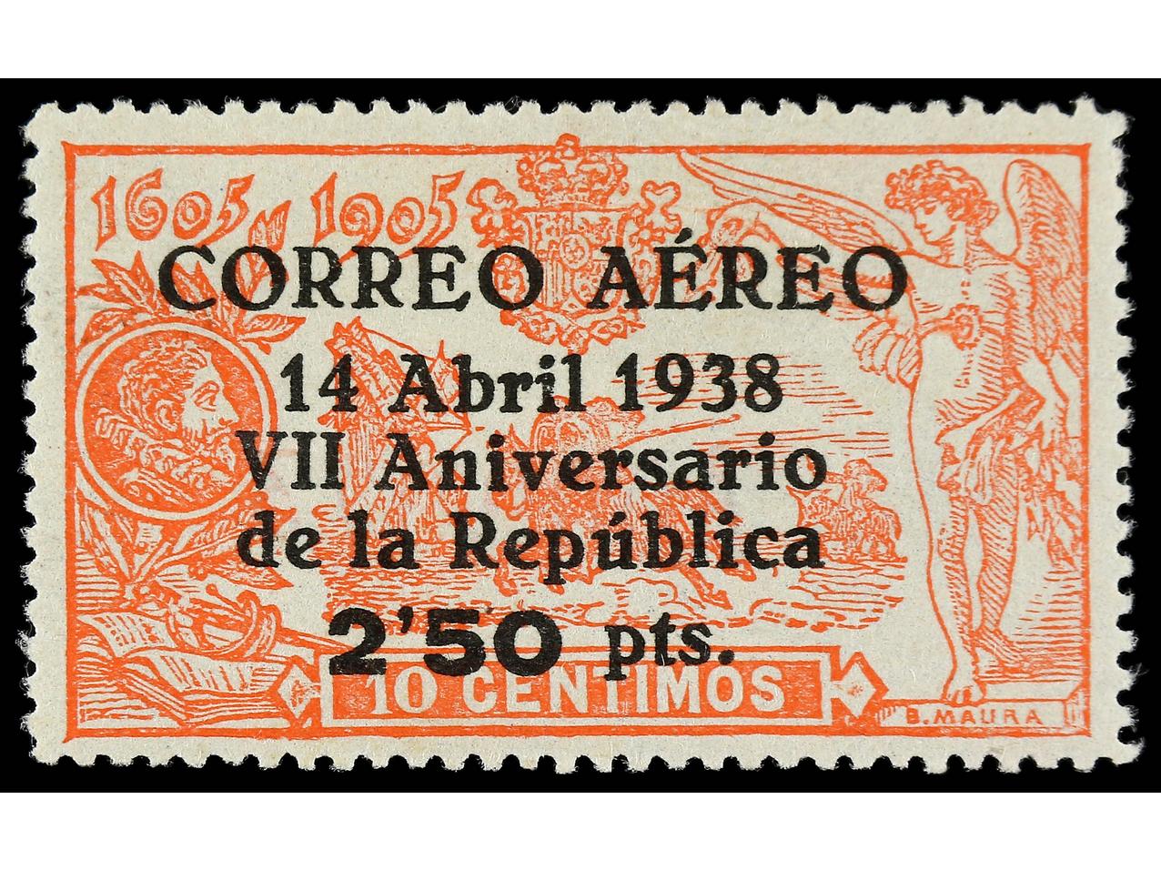 ESPAÑA. 2,50 pts. sobre 10 cts. rojo. LUJO. Ed.756. Cat. 250€. (Image1)