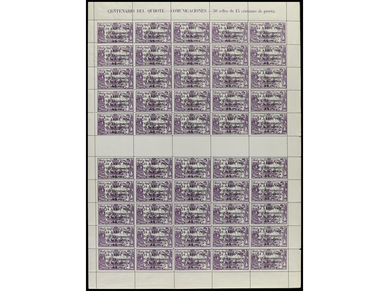 ESPAÑA. 45 c. s. 15 c. Hoja completa de 50 sellos. Ed.755. Cat. 1.000€. (Image1) (Image2)