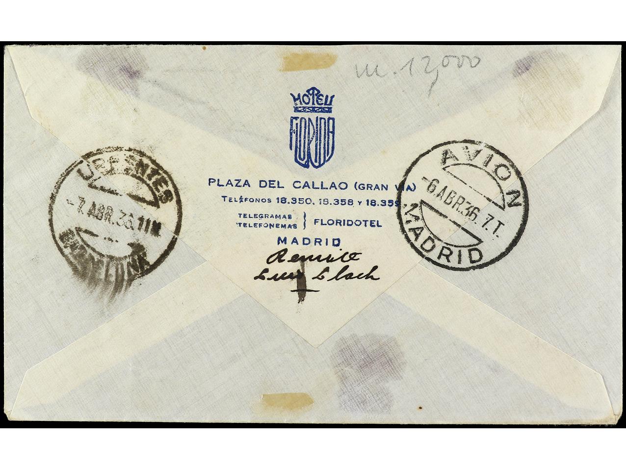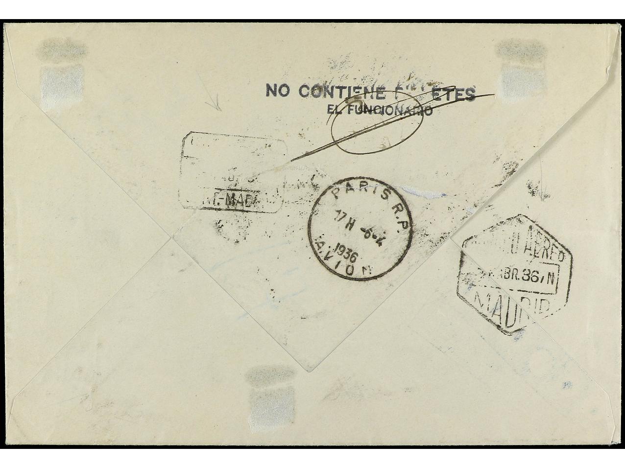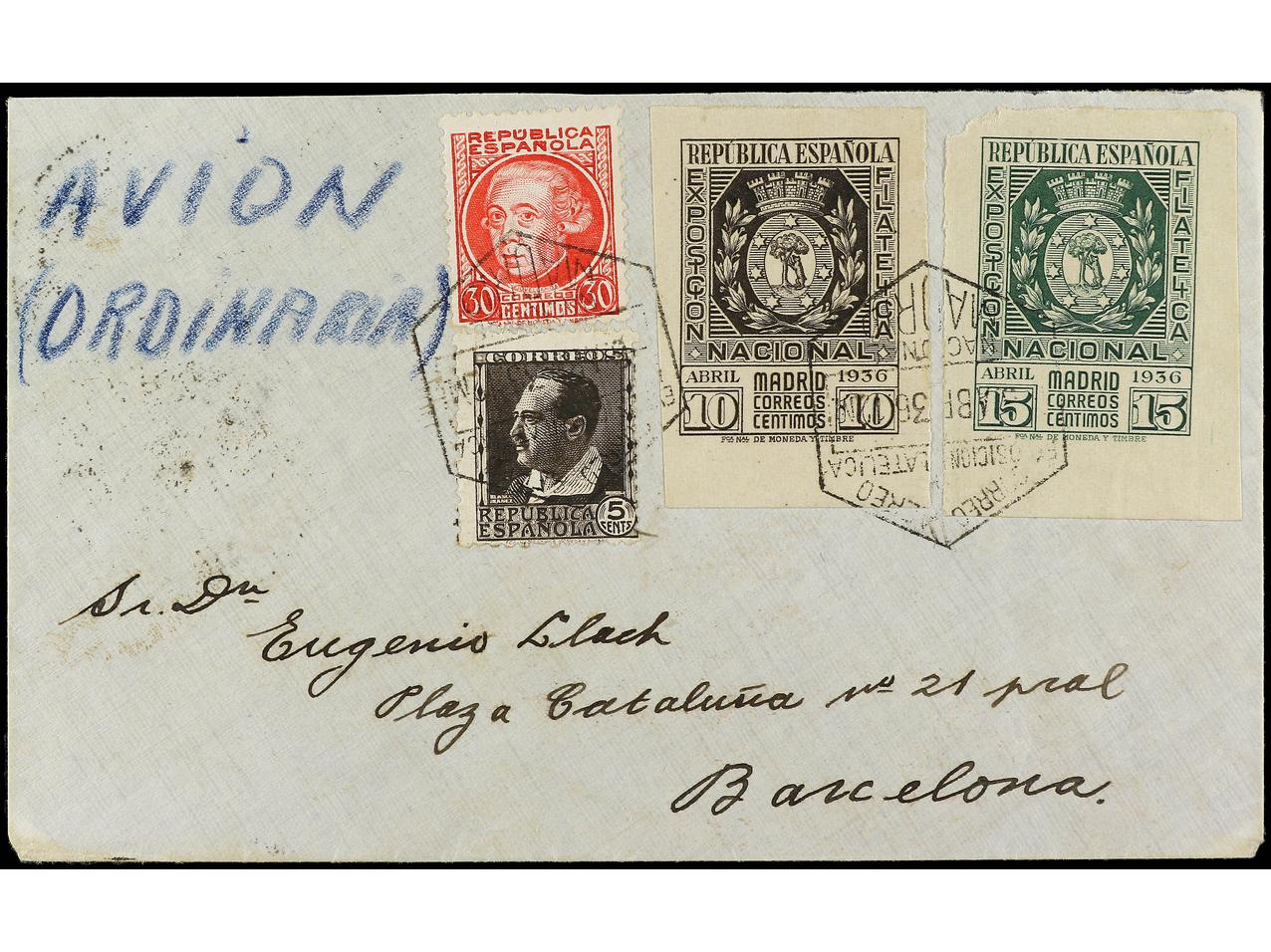 ESPAÑA. 1936. MADRID a BARCELONA. Serie completa más sellos de 5 cts. y 30 cts., al dorso llegada. Ed.727/28. (Image1) (Image2)