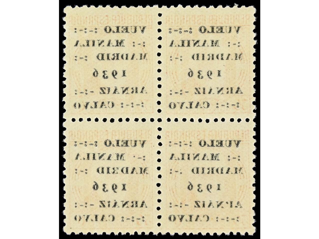ESPAÑA. 30 cts. rojo. Bloque de 4 variedad SOBRECARGA CALCADA AL DORSO. No reseñado. Ed.741 (4). (Image1)