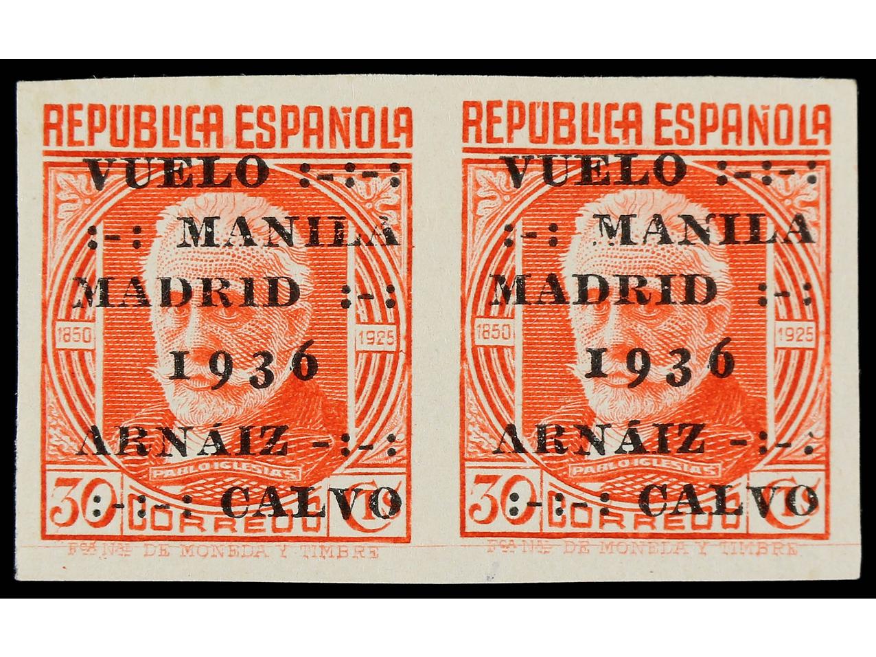 ESPAÑA. 30 cts. rojo. Pareja SIN DENTAR. Ed.741s (2). Cat. 340€. (Image1)