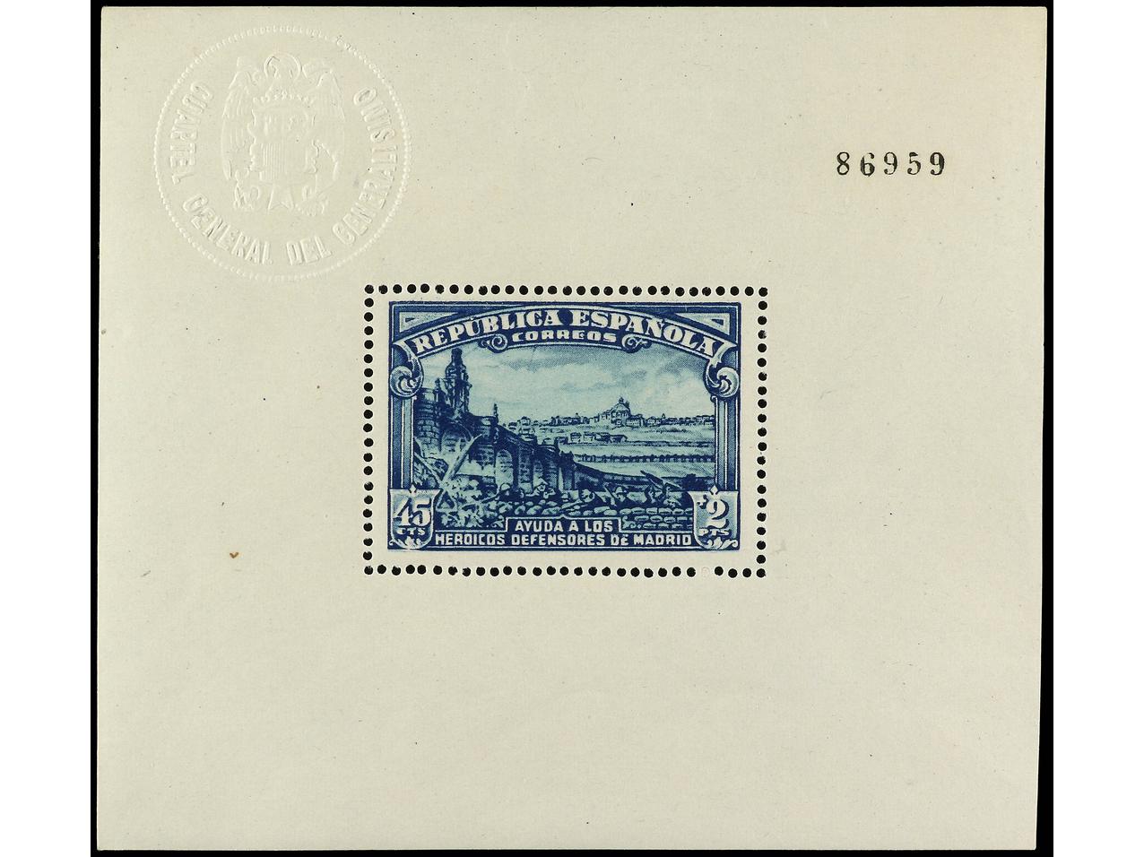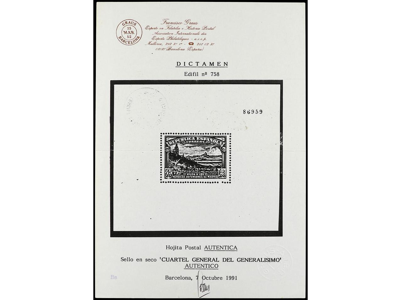 ESPAÑA. HB con sello en seco CUARTEL GENERAL DEL GENERALÍSIMO. Perteneciente a los archivos oficiales, probablemente para guardar como muestra. ÚNICA CONOCIDA. Dictamen GRAUS. Ed.758. (Image1) (Image2)