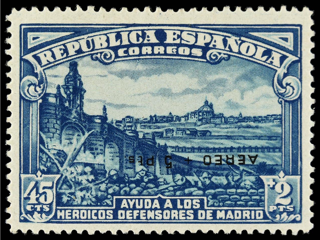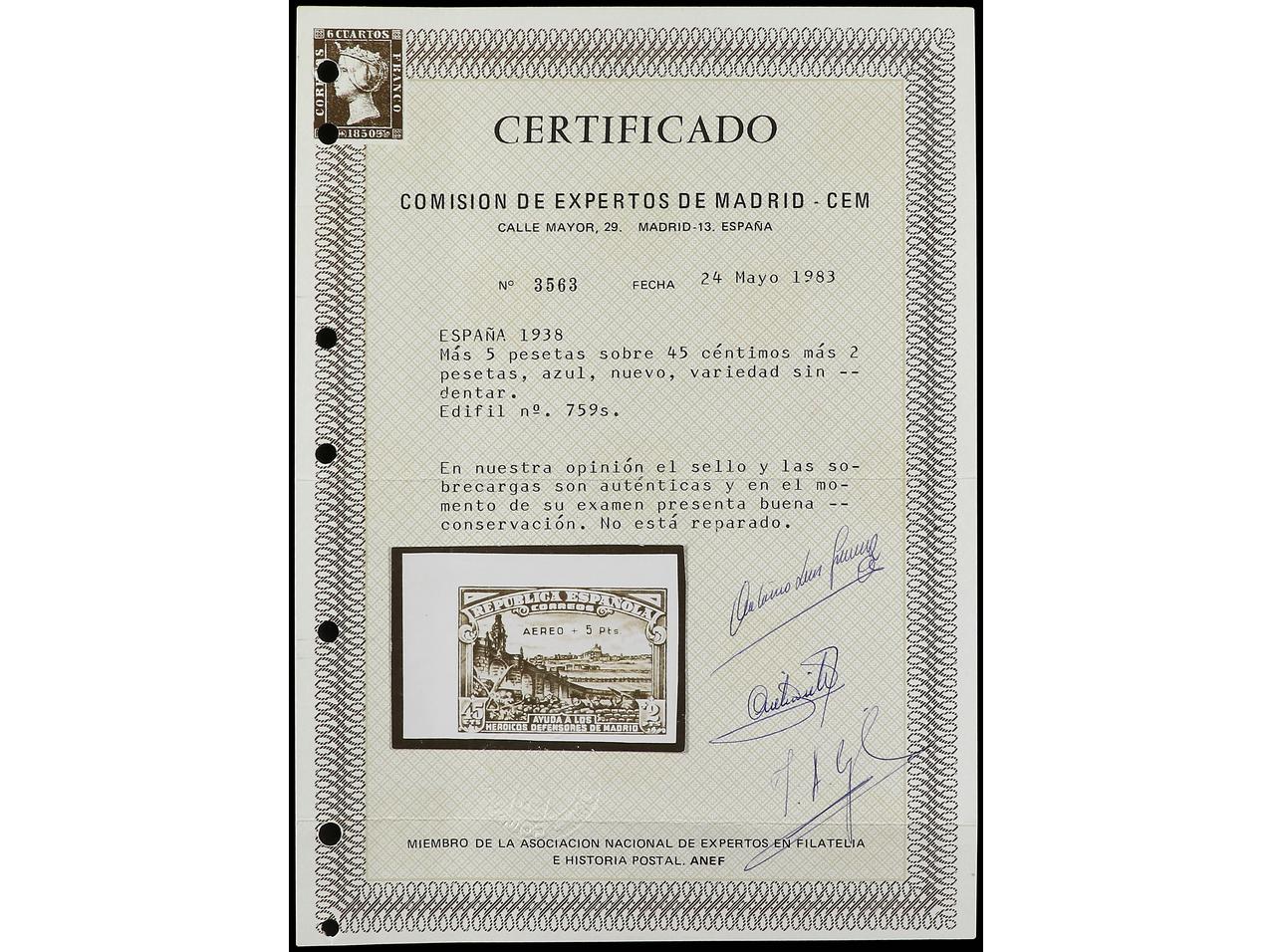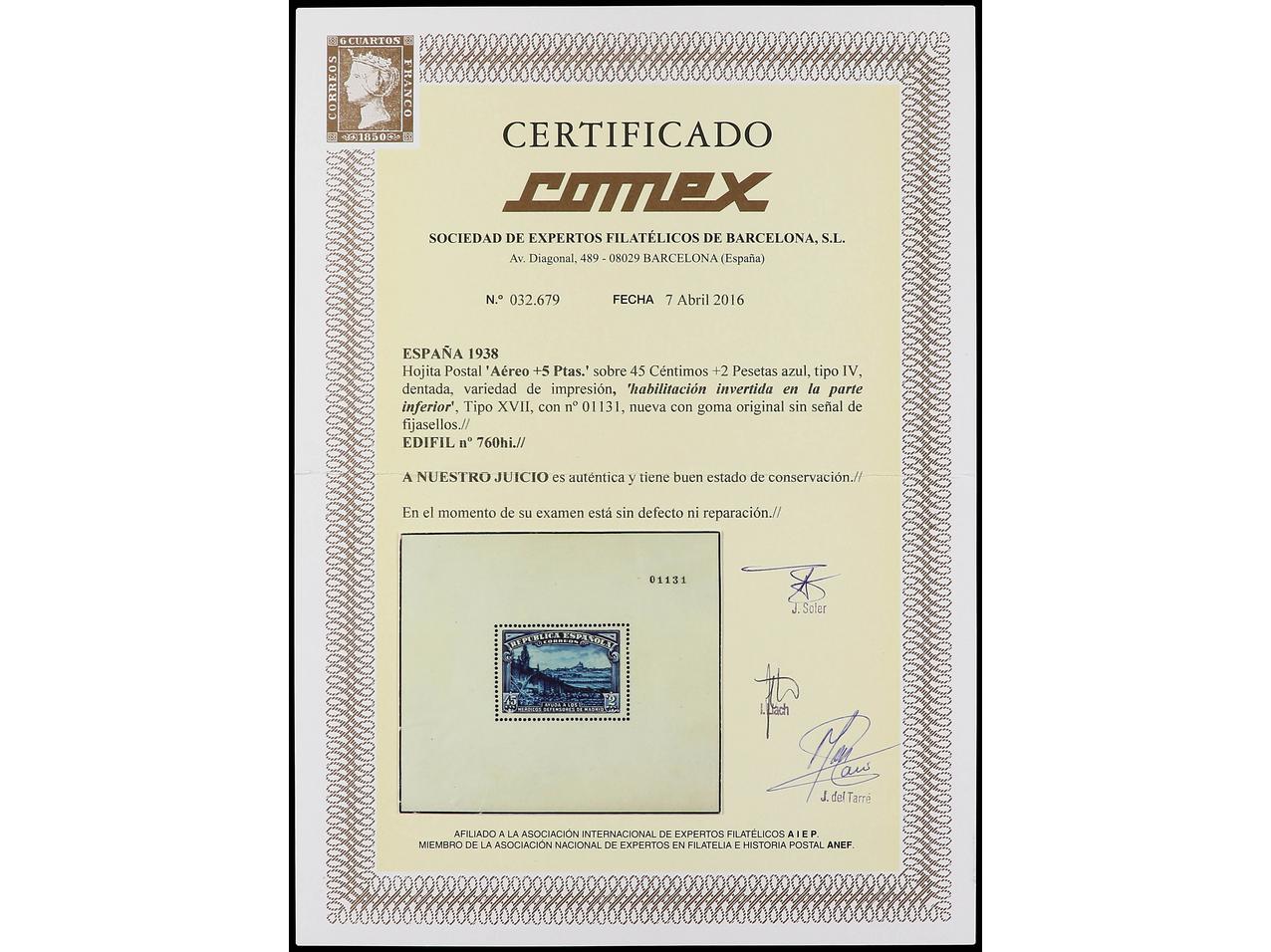 ESPAÑA. HB. Aéreo + 5 pts. HABILITACIÓN INVERTIDA. MUY RARA y de LUJO. Cert. COMEX. Ed.760hi. Cat. 9.100€. (Image1) (Image2)