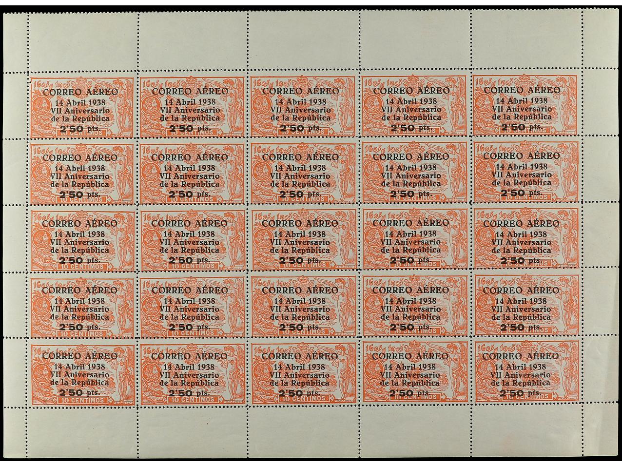 ESPAÑA. 2,50 pts. s. 10 cts. rojo. 25 sellos en bloque. Ed.756. Cat. 3.750€. (Image1)