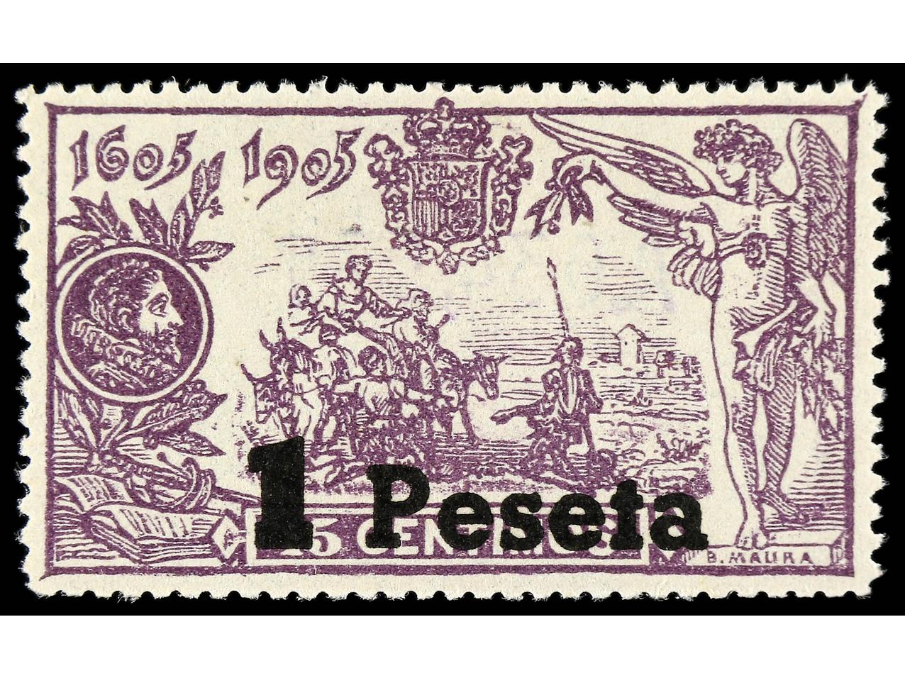 ESPAÑA. 1 pta. violeta. Solo con la habilitación ´1 Peseta´. LUJO. Ed.762hpa. Cat. +235€. (Image1)