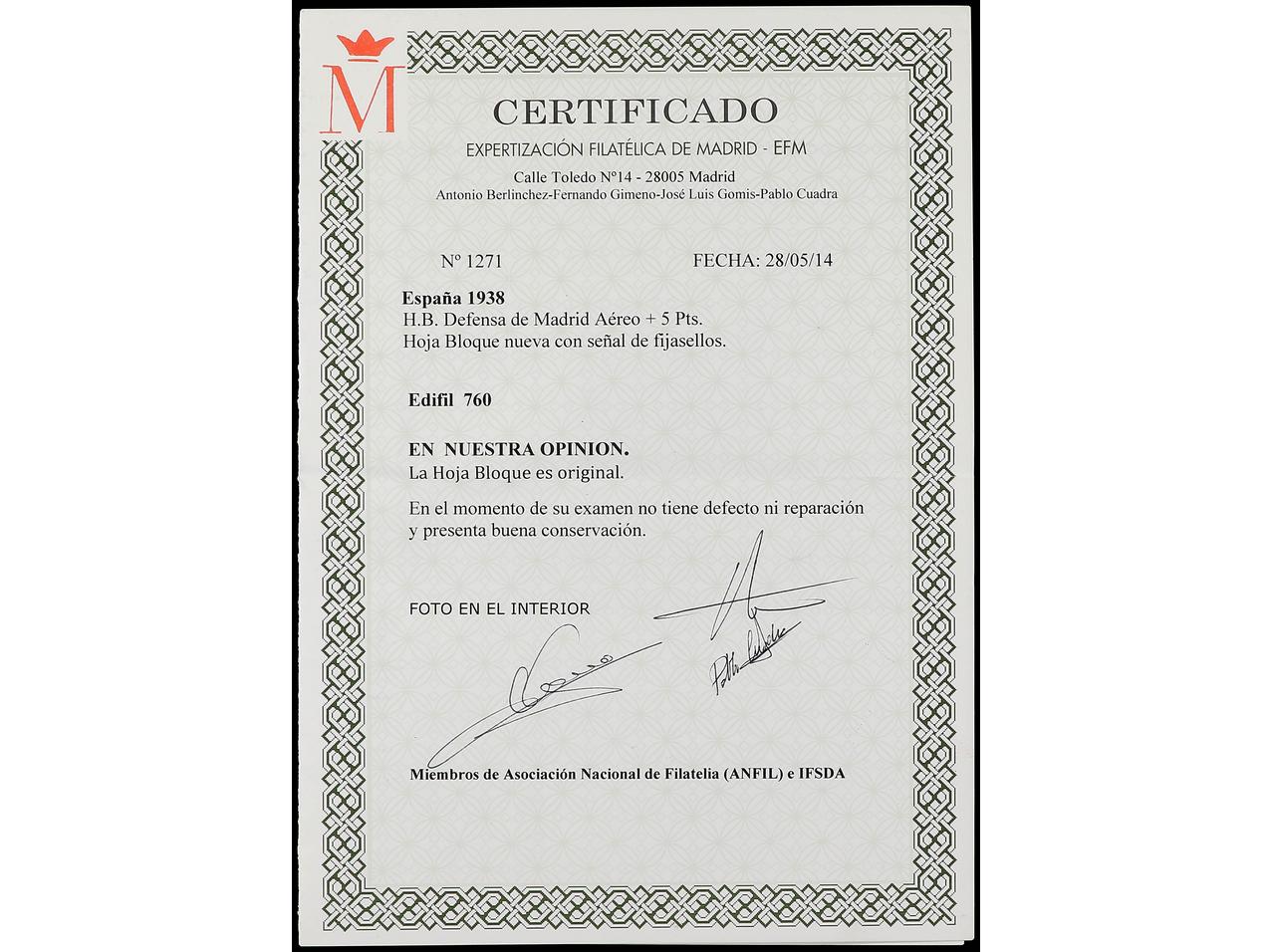 ESPAÑA. HB. Aéreo + 5 pts. Excelente conservación. LUJO. Muy rara en esta calidad. Cert. COMEX. Ed.760. Cat. 4.000€. (Image1) (Image2)