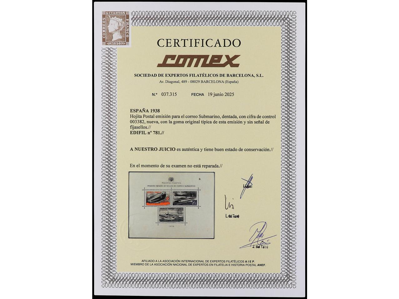 ESPAÑA. Hoja Bloque. Goma algo oscurecida, como es habitual. Cert. COMEX. Ed.781. (Image1) (Image2)