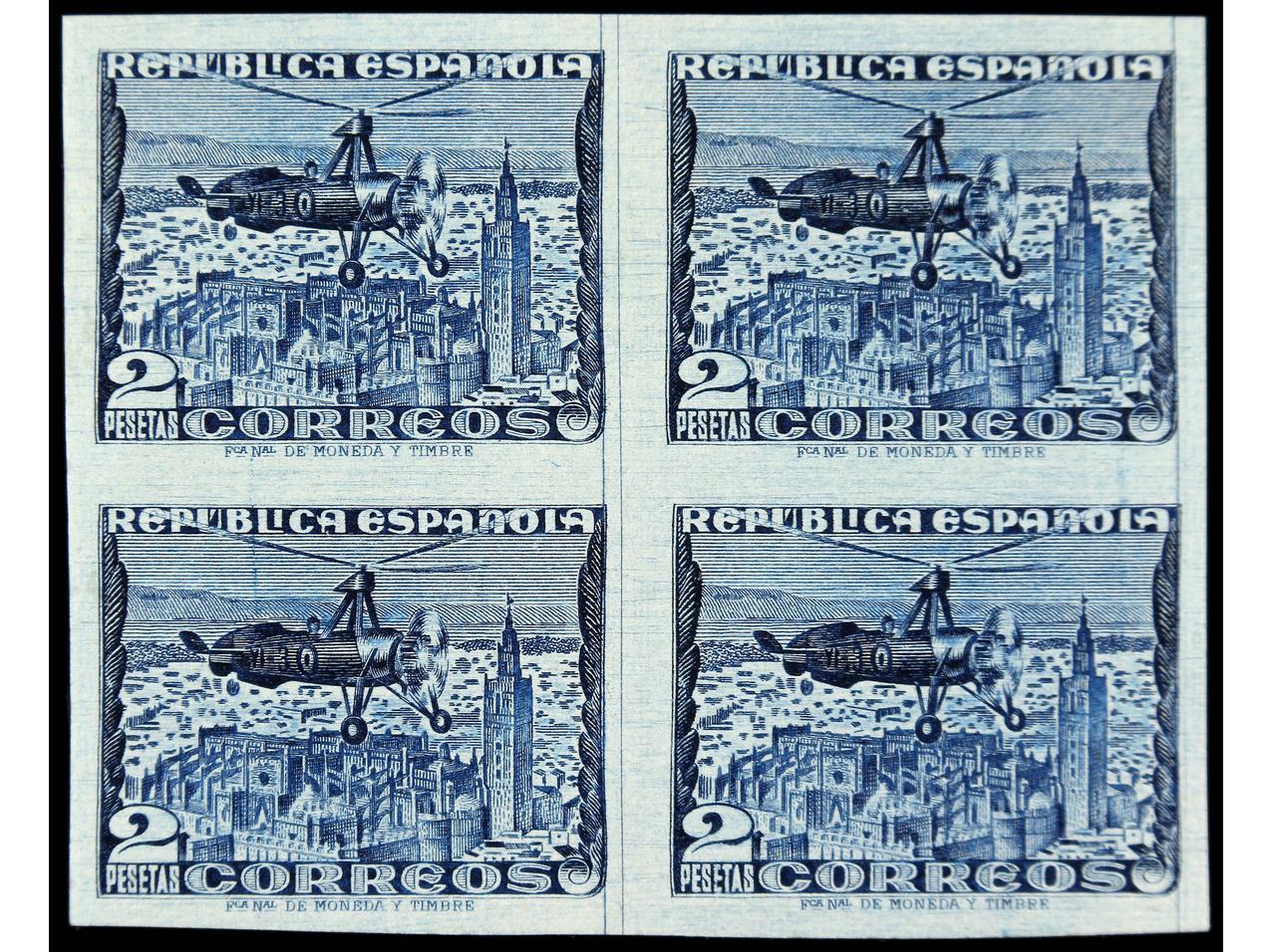 ESPAÑA. 2 pts. azul. Bloque de cuatro SIN DENTAR. LUJO. Ed.769s (4). Cat. 348€. (Image1)